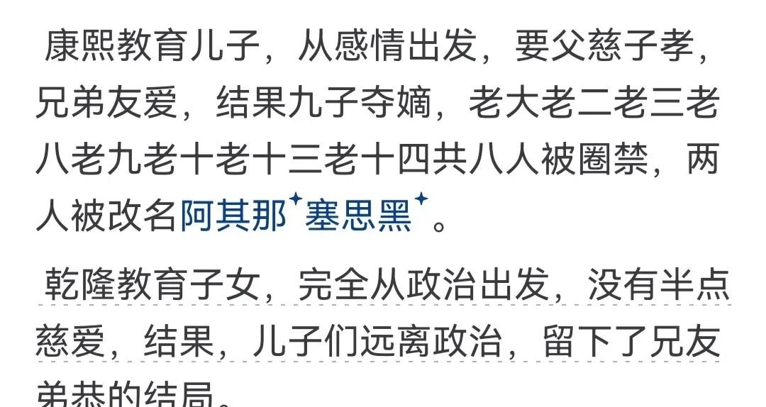 先别忙着反驳,这里有几个细节值得注意。比如康熙的教育方式,是用满满的亲情捂热儿子的心。而乾隆这一套教育风格却完全相反,说他“无情”一点也不夸张。他对继承人的培养简直严苛得过分,从不把感情放在优先考虑,更多是在乎权衡利弊。结果呢?他的后代一个个心理不够健全,能力又差,最终甚至拖垮了整个王朝。