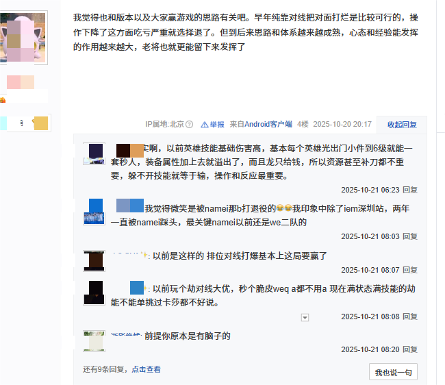 这么一说,“年龄论”就更站不住脚了,PDD、五五开他们退役那会,粉丝还一个劲说“英雄迟暮”,现在好多人听着都觉得是借口,纯粹是美化自己。还有人拿自己说事,十几岁反应飞快,结果LOL就卡在白银,年纪大了反而靠脑子单排上了钻石,说明年龄大也能玩,经验能补上很多东西。