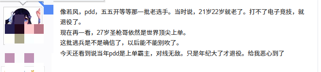 当然也不是一边倒地骂,有人就说以前LOL的环境跟现在完全是两个世界,那时候战术没现在这么花里胡哨,赢比赛就靠操作硬碰硬,手速一慢,直接就被年轻人按着打,根本没得玩,经验再多也没用,OGN那个年代,天才少年一波接一波地出,老人不退,就是被新人冲垮,根本顶不住。