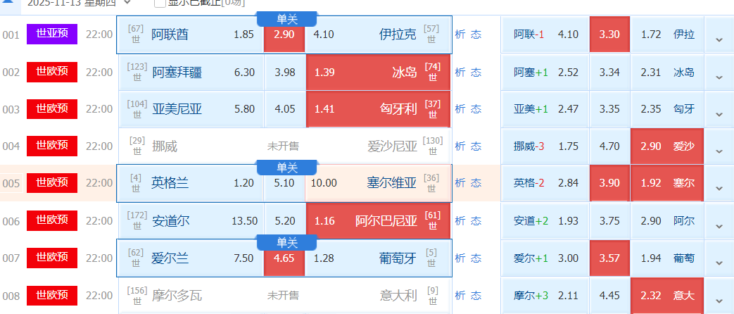 匈牙利近期表现相对稳定,近10场同样是2胜8负,但对手整体实力更强。上一场主场2-0击败亚美尼亚,显示出一定的压制力。球队在与葡萄牙的较量中能逼平对手,说明防守韧性不错。阵容方面,主力舍弗因撞伤可能缺席,但整体影响有限。匈牙利在客场表现虽有起伏,但面对亚美尼亚这种防守不稳的对手,胜算依然较大。
