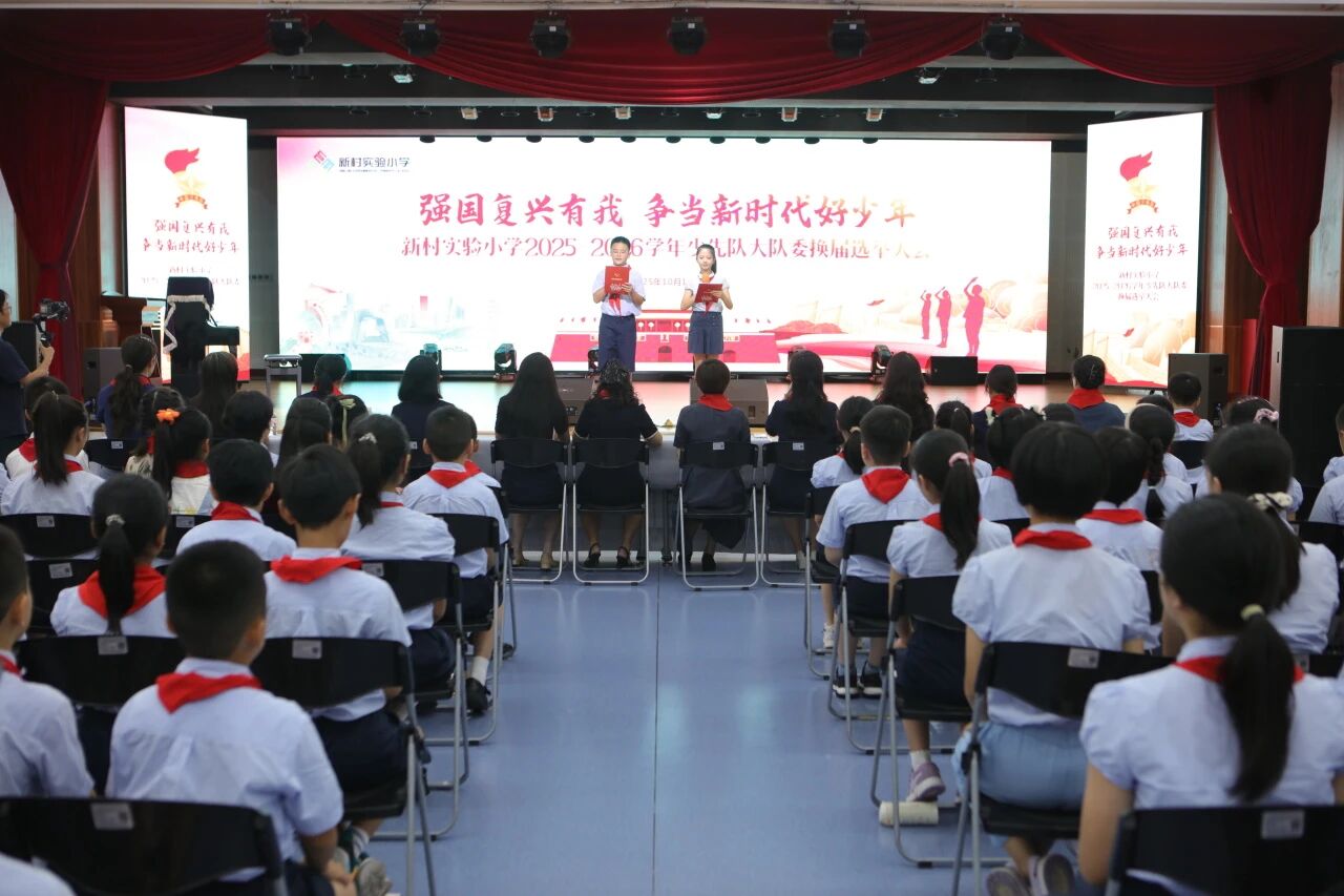 新村实验小学校长郑丽在讲话中对所有参与竞选的队员给予高度评价。她指出,少先队是少年儿童健康成长的摇篮,换届选举是一次“组织的接力”与“成长的试炼”。她希望新当选的大队干部做“为同学服务”的行动者、“新美好榜样”的示范者,并勉励全体队员将“强国复兴有我”的誓言融入日常学习生活,转化为勤奋学习、团结同学、服务集体的实际行动。