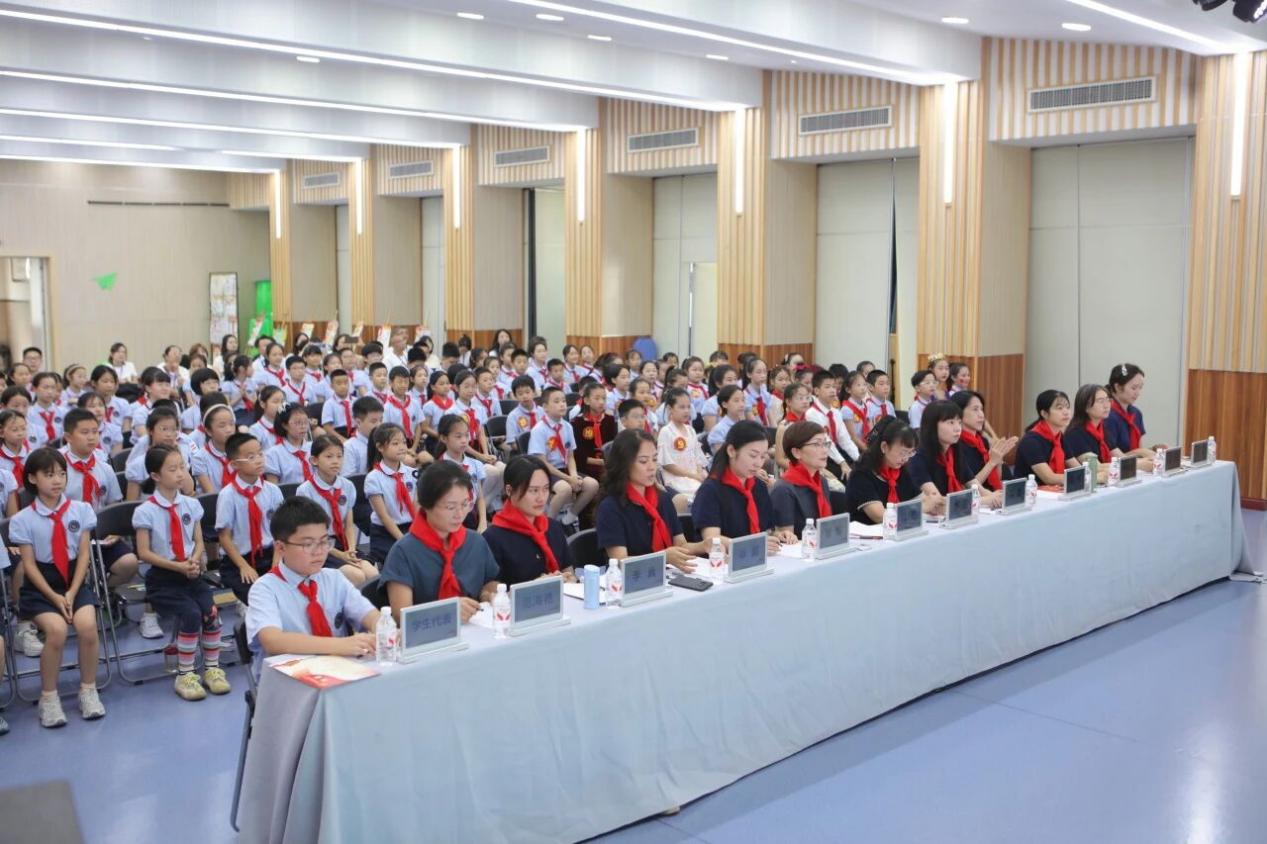 大会在庄严的国歌声中拉开帷幕。随后,出旗仪式举行,全体与会人员肃立敬礼,并齐声高唱《中国少年先锋队队歌》,嘹亮的歌声充分展现了少先队员们蓬勃向上、积极进取的精神风貌。