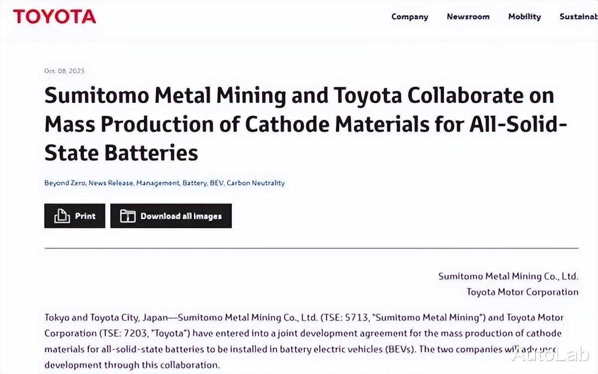 丰田在这个月初就宣布要在2027-2028年推出全固态电池。