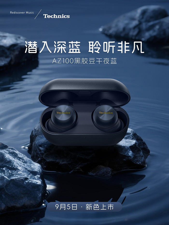 2025 年 9 月 Technics 为旗舰款真无线蓝牙耳机家族EAH-AZ100新增一款时尚配色——午夜蓝。EAH-AZ100 凭借其卓越的音质、智能的操控性和舒适的佩戴体验赢得了广泛赞誉和众多媒体奖项。