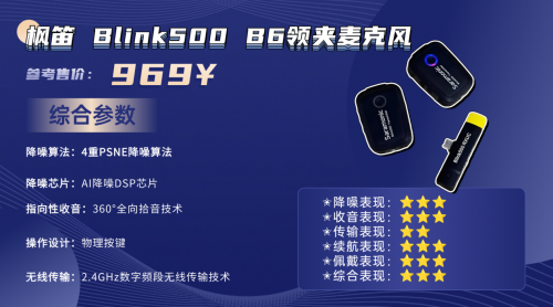 枫笛Blink500 B6是手机创作者的专属利器,以低延迟传输、优化人声和便捷操作为优势,精准匹配双人短视频创作需求,虽传输距离不算极致,但在核心场景下表现稳定,是手机端进阶用户的理想选择。