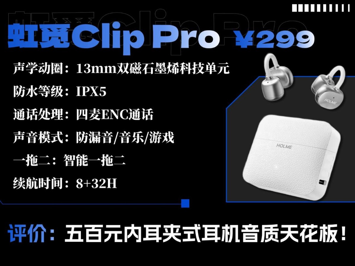 高口碑耳夹式耳机推荐虹觅Clip Pro价格:299元
