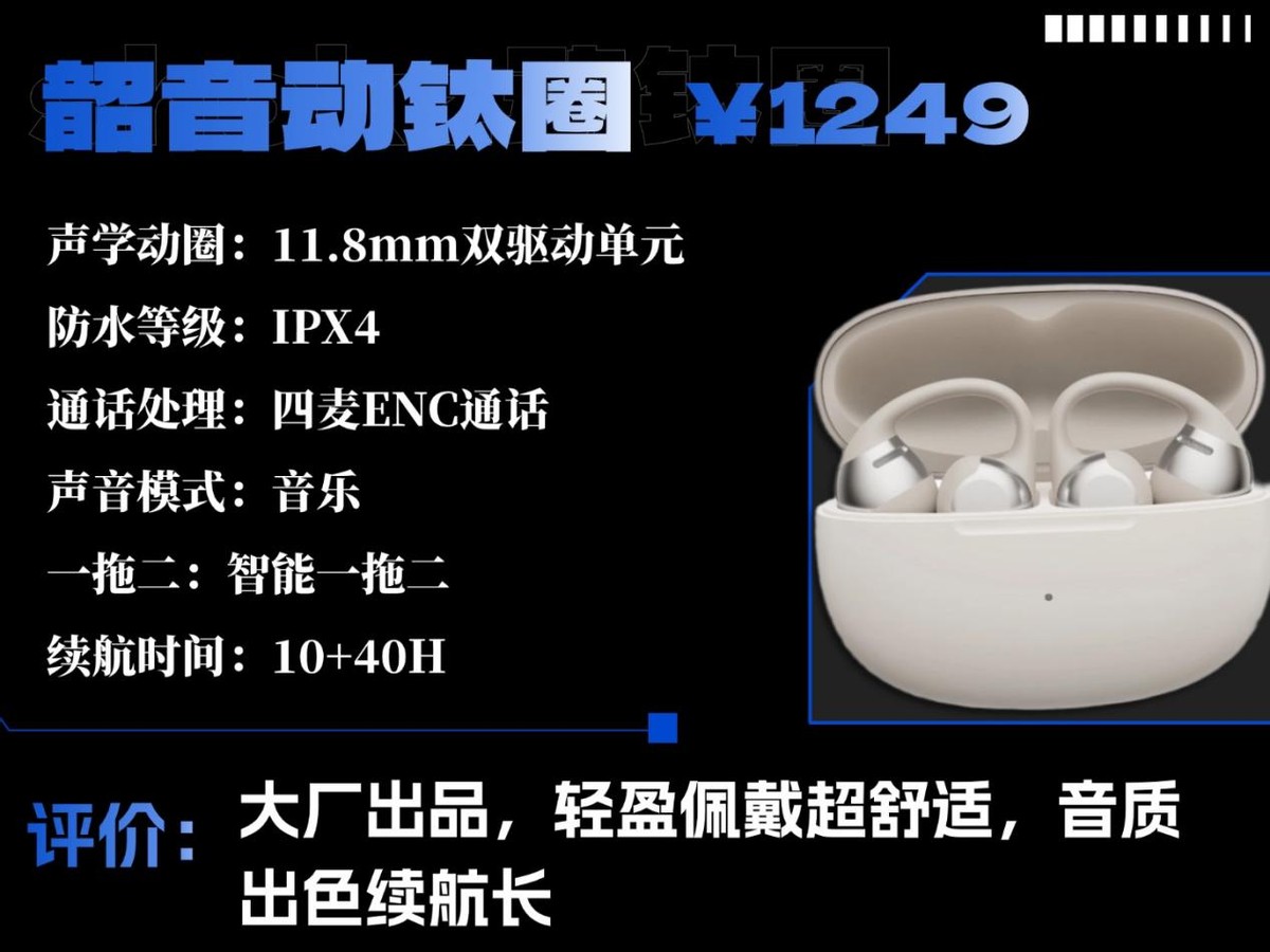 推荐理由:大厂出品,轻盈佩戴超舒适,音质出色续航长