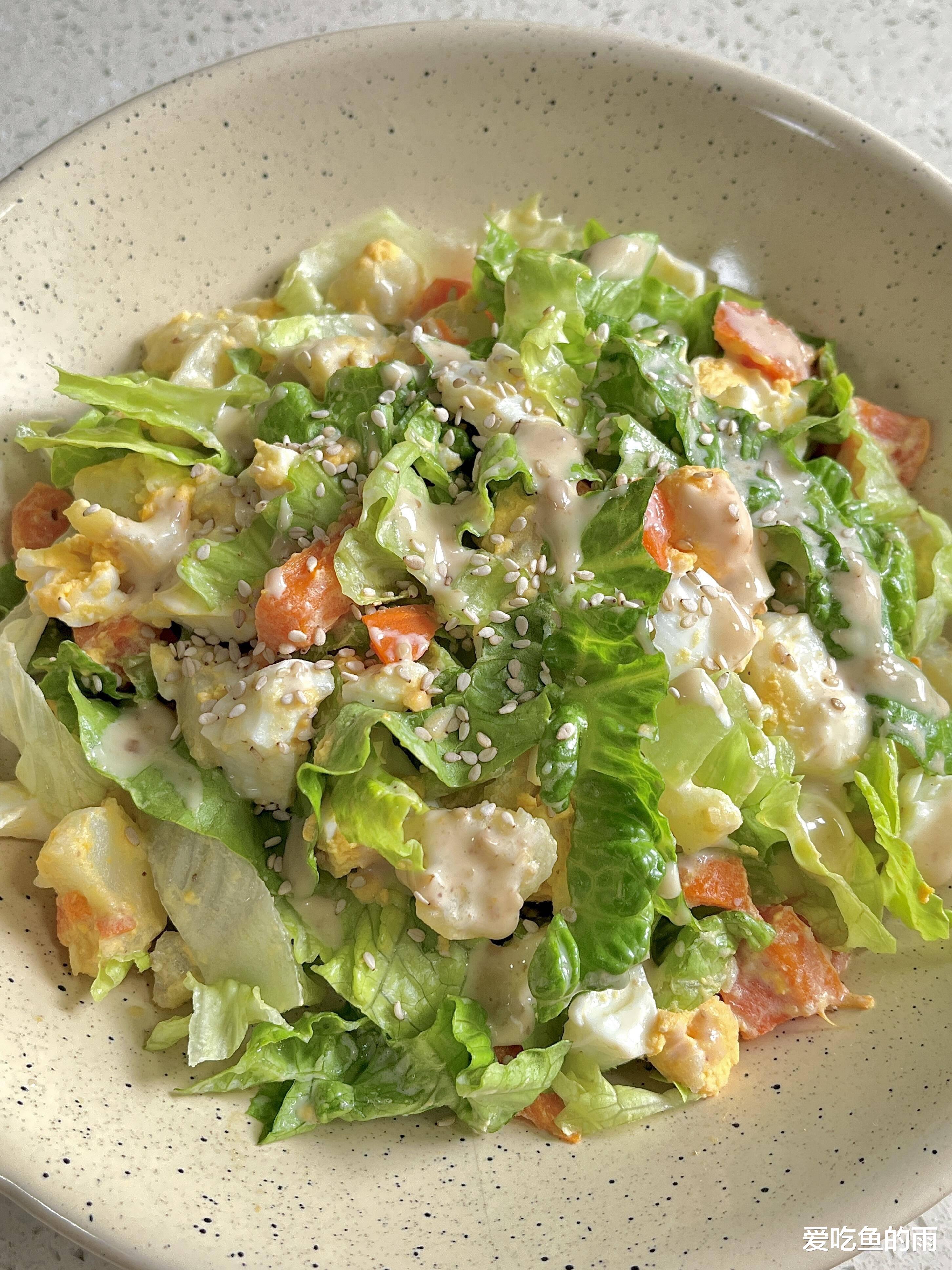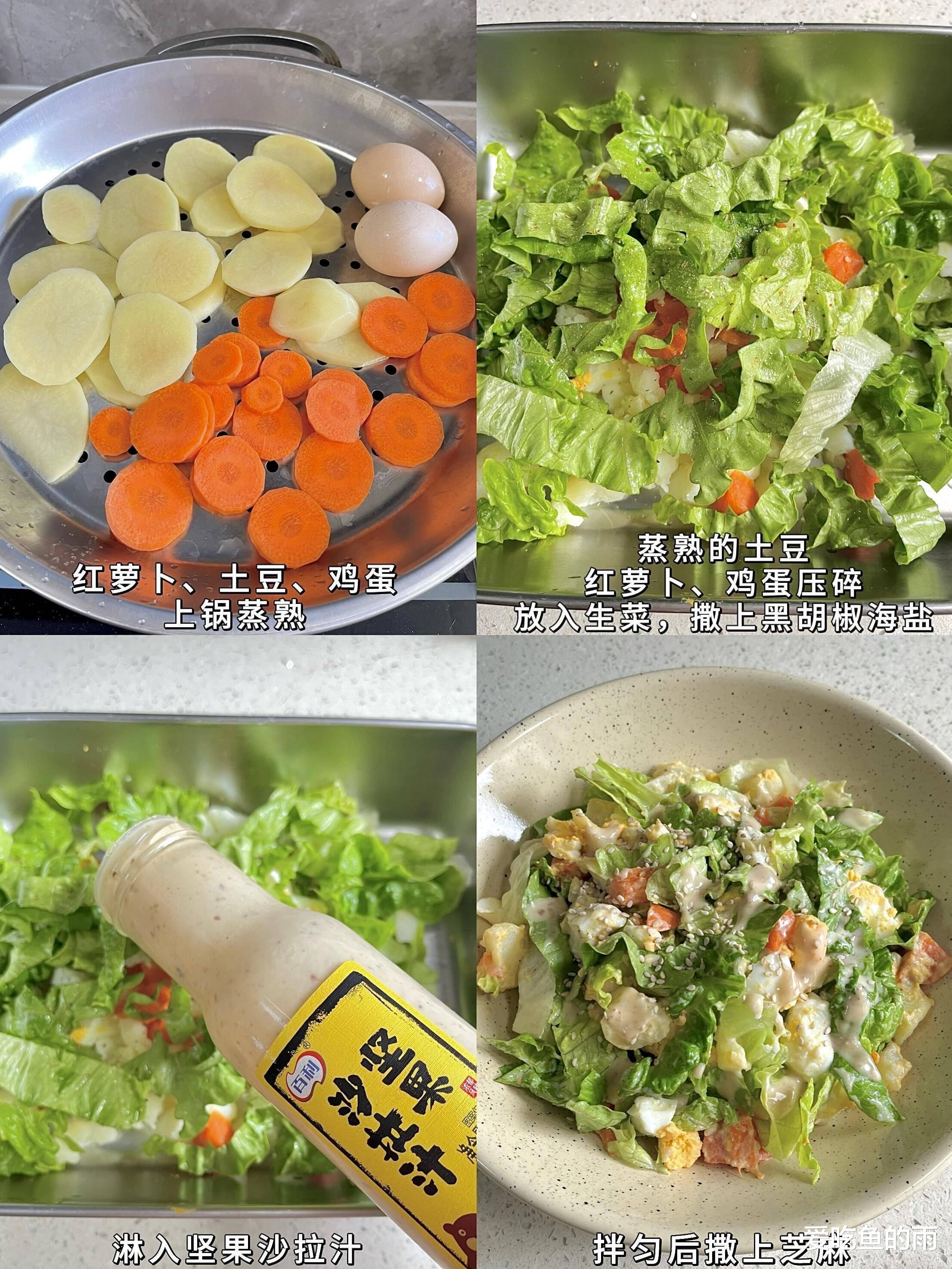 这道沙拉藏着我和闺蜜的“春日仪式感”。大学时我们总爱在周末骑着单车去郊外,带上一盒自制的土豆生菜沙拉,坐在开满小野花的草地上,一边晒太阳一边互相投喂。那时候总觉得,只要身边有朋友和美食,连风都是甜的。现在每次做这道沙拉,总想起她举着生菜叶喊“快看!这片叶子像爱心”的样子——原来最珍贵的美食记忆,从来都和一起分享的人有关呀!
