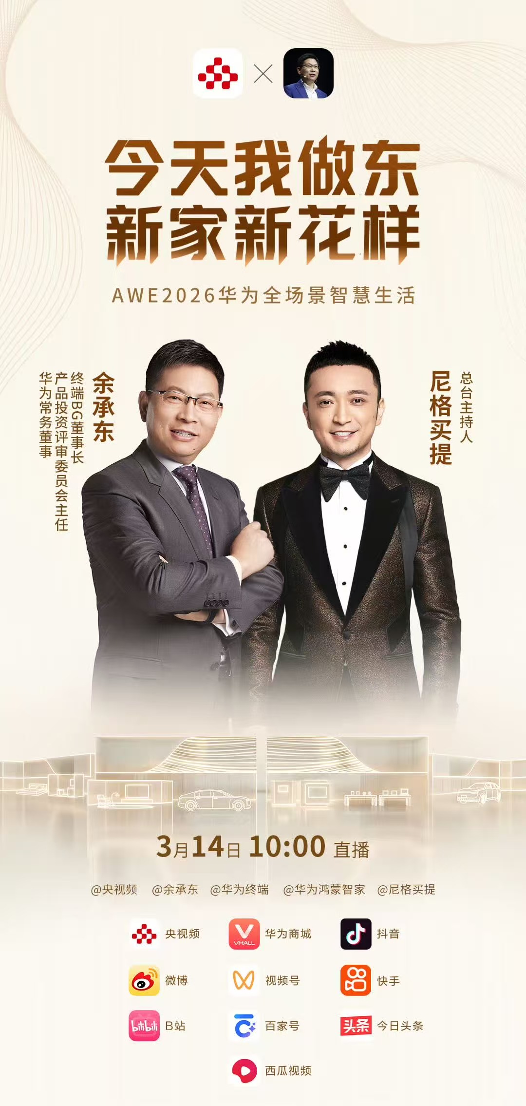 2026年3月14日,在上海举办的中国家电及消费电子博览会(AWE 2026)现场,一场备受瞩目的直播活动让科技圈为之沸腾。华为高管余承东在与央视主持人尼格买提的直播中,意外曝光了华为畅享 90系列真机,并将于3月底正式发布,随即华为终端官方微博同步发布预热海报。这款新机不仅延续了畅享系列一贯的实用主义风格,更带来了麒麟8系芯片、鸿蒙操作系统6以及华为巨鲸大容量电池的三大核心升级。