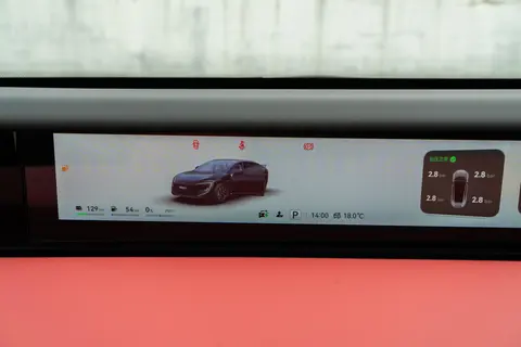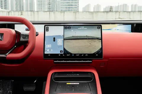 中控台上的35.4英寸全景远端屏特别显眼,几乎贯穿了整个中控台,显示面积很大,还能分成好几个区域显示不同的信息。左边可以看导航,中间放音乐或者视频,右边显示车辆的状态,比如电量、胎压这些,一眼就能看清楚,不用来回切换屏幕,开车的时候也更安全。搭配着悬浮式的中控屏和三幅式的多功能方向盘,操作起来很方便,科技感也挺足。