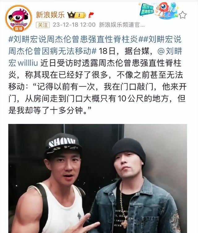 刘畊宏曾在2023年透露周杰伦身患强直性脊柱炎。