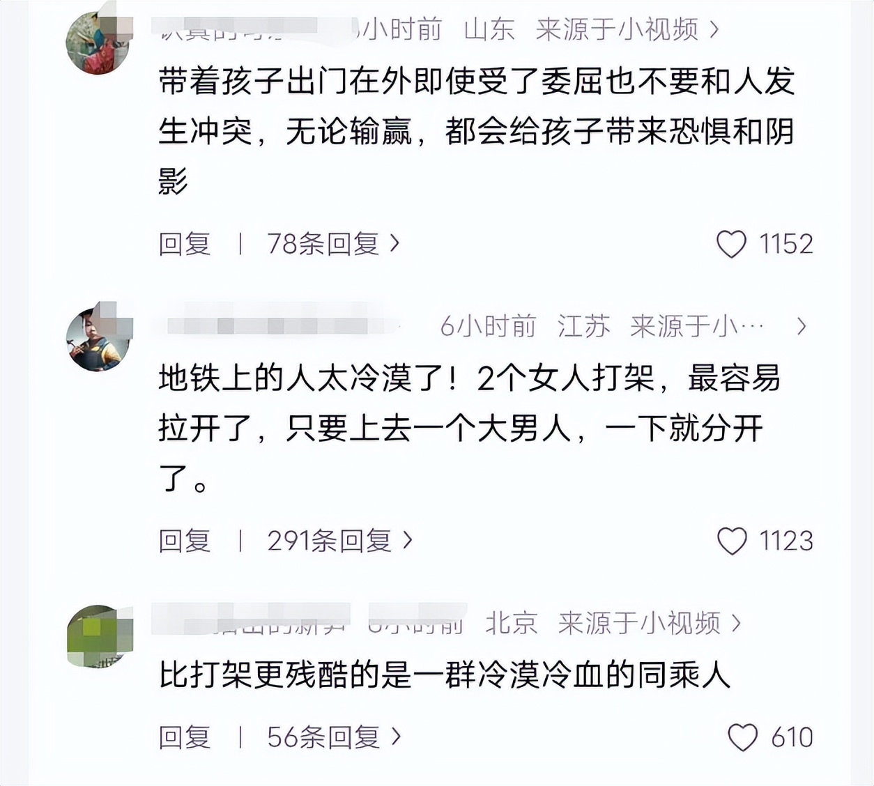 其实想想也无奈,这年头 “扶老人怕被讹” 的顾虑,让很多人遇事第一反应是躲开,可地铁里有监控,人人手里有手机,真要帮忙劝架,根本不用担心被赖上。两个女人打架没凶器,上前拦一下就能制止的事,却没人愿意多管,这背后的 “冷漠病”,实在让人唏嘘。“怕惹事” 的顾虑,终究败给了本该有的善意。