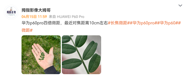 还有厉害的是华为P60 Pro这颗长焦镜头加入了长行程滑轴变焦镜群,具备了拍摄微距影像的能力。最近可实现10cm的对焦距离,这在手机移动影像领域实属难得,同时也让用户能够通过长焦微距记录更多生活中的细节之美,比如拍摄植物叶片、花朵、昆虫、露珠、宠物等等。
