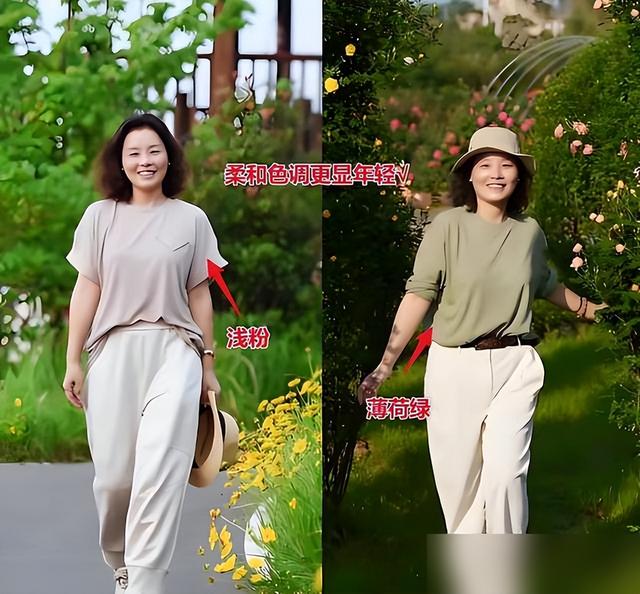 第一,颜色选“柔和浅色系”,衬得皮肤透亮不显年龄。浅蓝、浅粉、米白这些颜色,像给皮肤加了层“柔光滤镜”。
