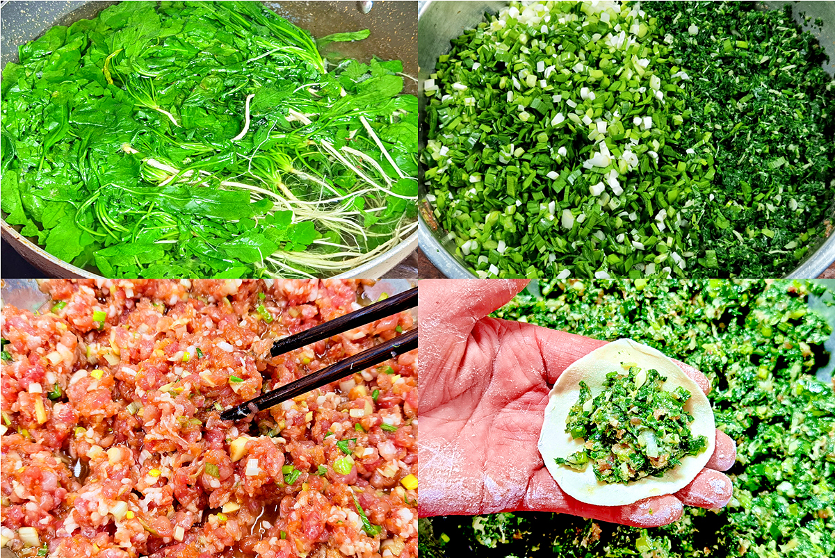 第一款:荠菜韭菜猪肉馅 —— 荤香爆汁,全家抢着吃