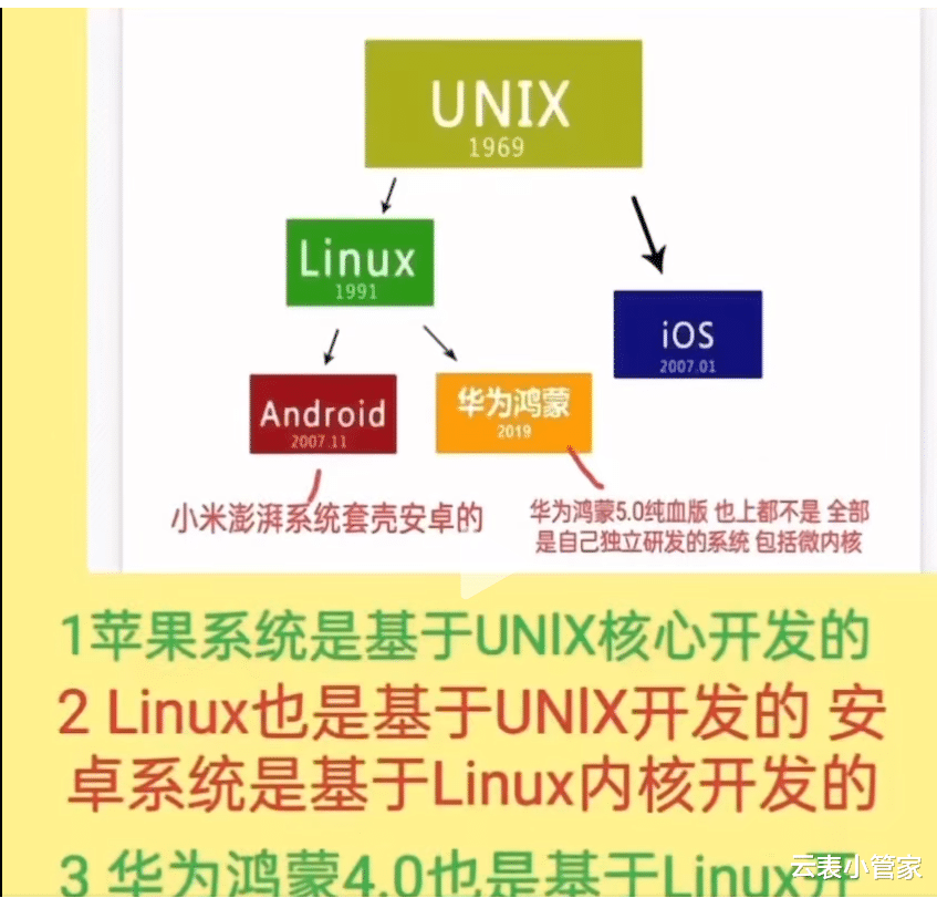 苹果操作系统底层来自 Unix;Linux 也是 Unix 后代;安卓则是跑在 Linux 内核上的“另一种进化体”;