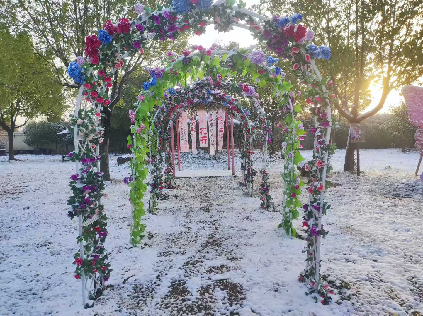 儿童游乐区的设施也被白雪温柔包裹,滑梯、秋千变成了童话世界的一部分,等待着孩子们的笑声将其唤醒。