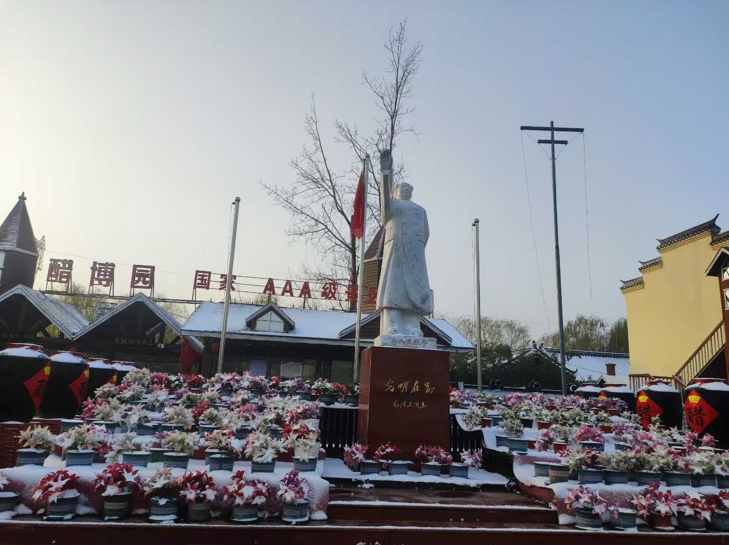这场初雪像是季节送来的一份精致礼物,将三秋醋博园装点得如诗如画。白雪覆盖下的古醋作坊静默而立,仿佛在诉说着跨越时光的酿造故事。园区负责人表示:“雪景不会持续太久,但这份冬日的美好已经留在我们心中。”