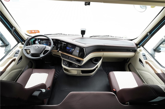 只追求运输效率还远远不够,乘龙H7 Pro创赢版在舒适度方面也下足了功夫。其配备2.5米宽体驾驶室,内高达1.93米,空间自由度的拉升更方便活动舒展,即使车内站立也不会产生丝毫压抑。同时,车辆还匹配可自动调节的皮质通风加热座椅与110公分超宽卧铺 ,确保卡友在长途运输间隙得到充分休息,纵享极致的驾乘体验。