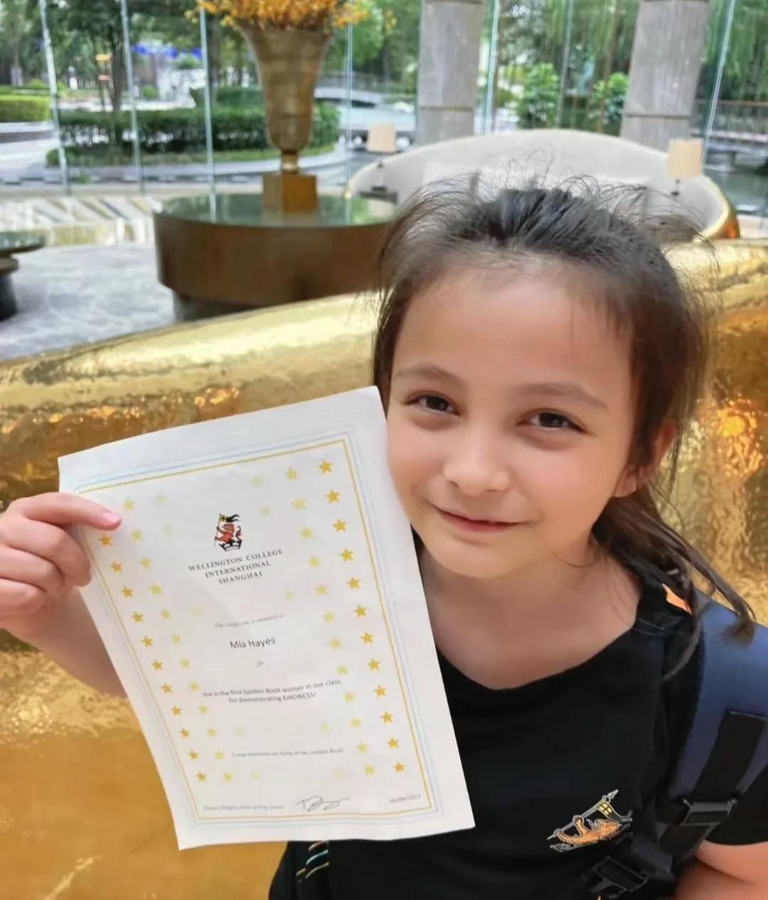 大女儿米雅如今已经11岁了,她在国内上学,不仅学习成绩优异,而且还当了班长,小女孩眼睛大大的,相貌俏丽,因为是混血的缘故所以五官很立体,是个标致的小美女。