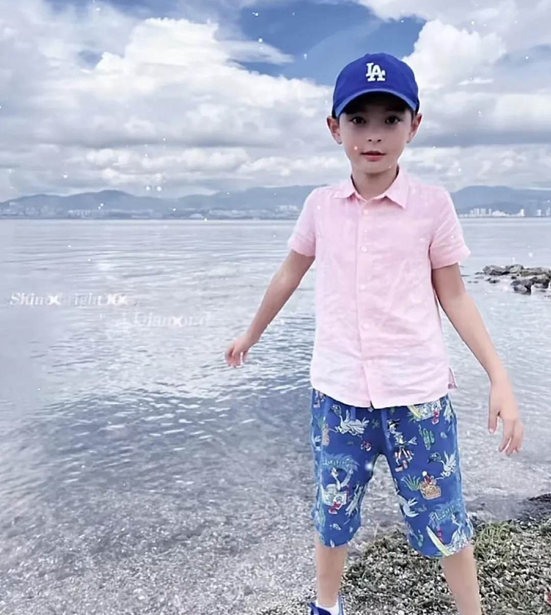 9岁的儿子爱登小时候就很萌,像个奶团子一样,白白净净的,长大后还是很帅气,眼睛大大的,也是个帅气的混血儿,睫毛很长,发色偏栗色,完美继承父母的颜值优势。