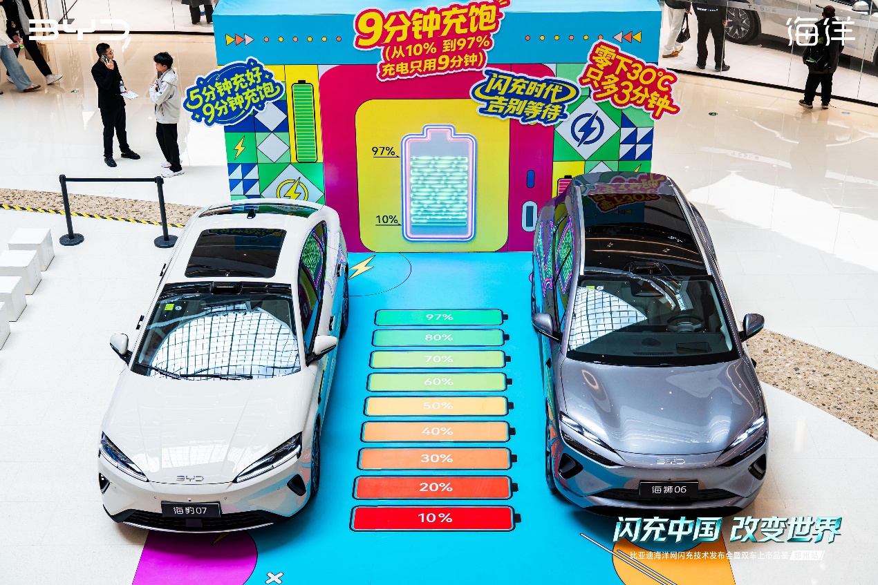 3月21日,比亚迪2026款海狮06EV、海豹07EV郑州双车同步上市。两款车均搭载比亚迪第二代刀片电池,配合闪充技术,电量从10%充至70%仅需5分钟,从10%充至97%也仅需9分钟,彻底告别充电慢等问题。