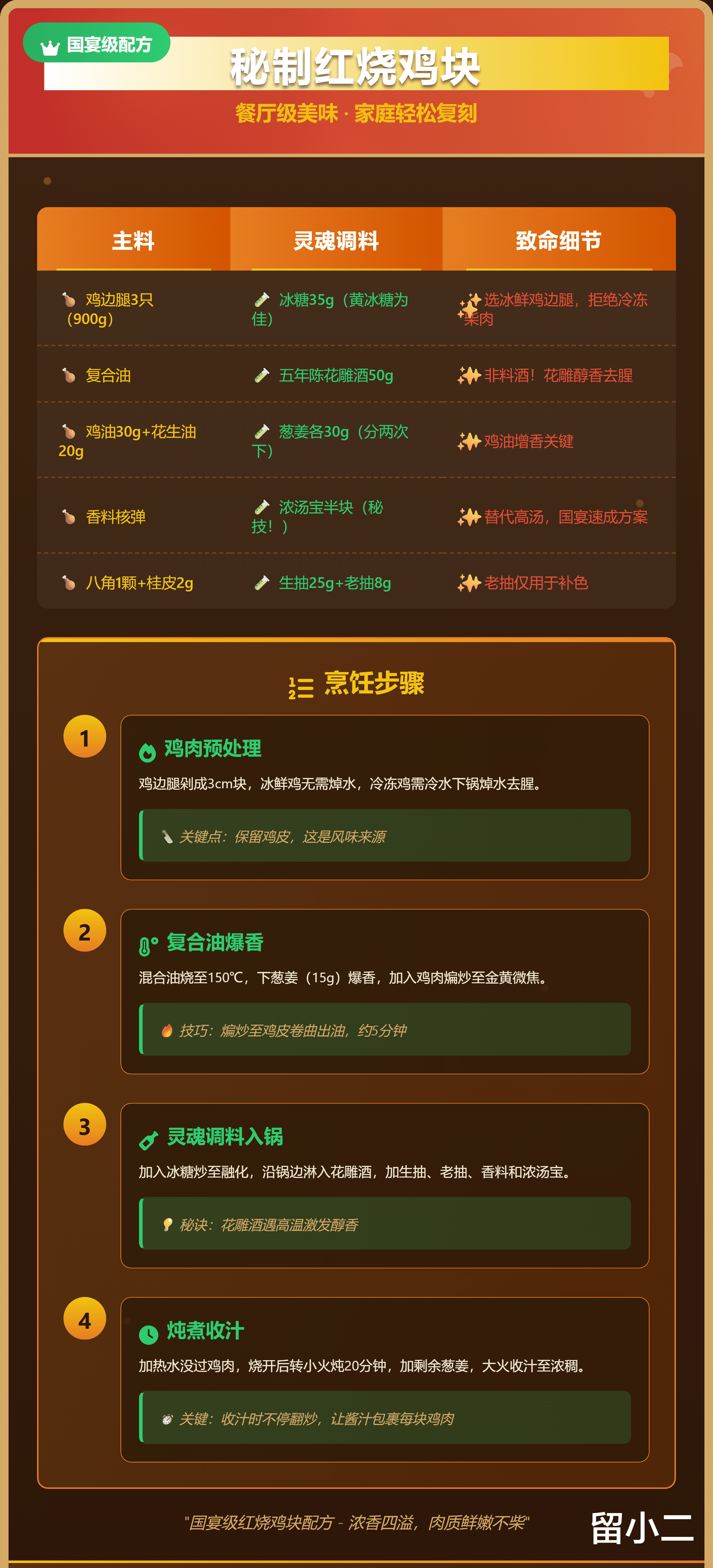 【90%人毁在第一步】红烧鸡腿还在焯水?国宴后厨绝密“生煎锁汁法”今日曝光!从焦糖化反应到胶原蛋白转化,手把手教你用家用锅烧出琥珀透亮脆皮,肉质弹而不柴,汤汁浓到粘唇!