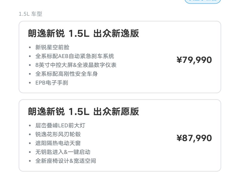 版本的推荐上,我个人更推荐朗逸新锐的出众新愿版,可以拥有无钥匙进入、一键启动、倒车影像、16寸轮毂、电动天窗等,都是比较刚需的舒适配置。