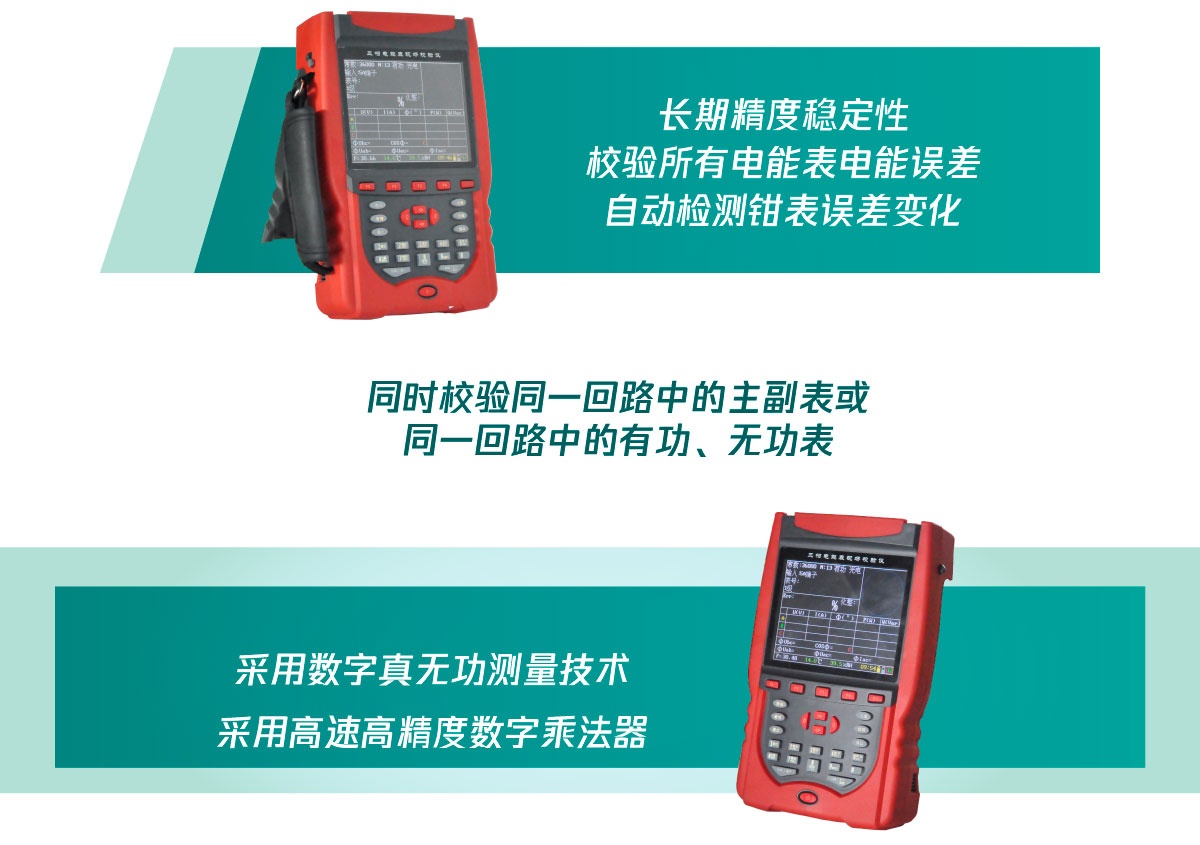 在功能设计上,产品兼顾实用性与便捷性,搭载4.7寸工业级TFT宽彩屏,显示清晰、信息量大,每一项功能均一屏显示,操作简单,无需专业培训即可上手。具备5A钳误差自检功能,可随时检测钳表误差,提醒工作人员清洁钳口,解决了钳表长期使用后误差变化的问题,延长钳表使用寿命,降低耗材成本;支持无线稽查功能,可全面检测现场计量系统故障,核查高低压综合误差,同时具备电能累积功能,可校验无电能脉冲输出的电能表,适配节能指标测试场景。