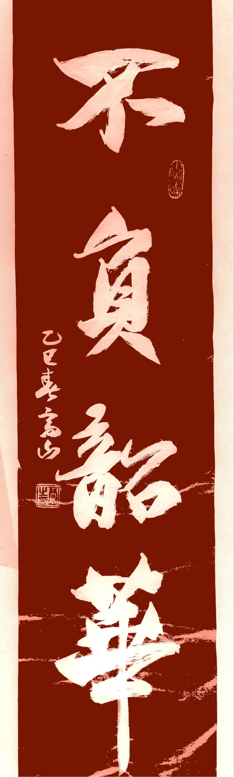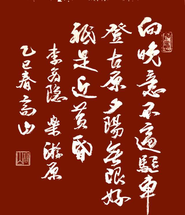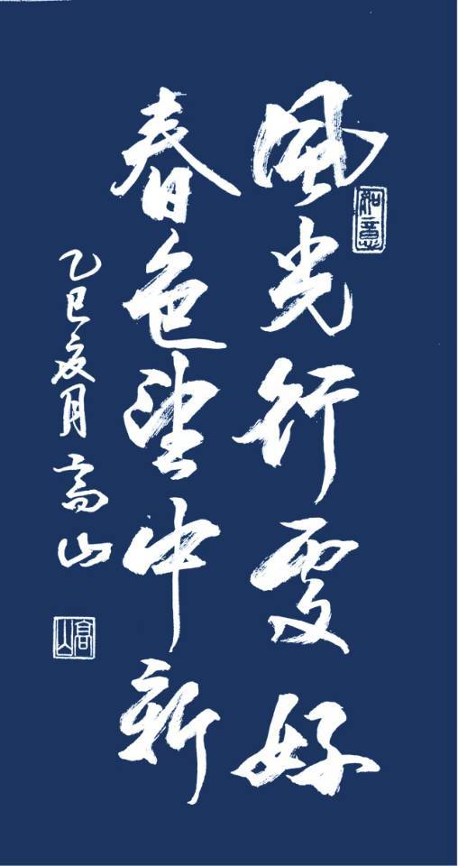 高治业(高山)50年出生,65年工作,中共党员,服兵役七年,也曾选派到中南海当大厨,工作其间数十年如一日,坚持练字,笔耕不辍,2001年退休后,离家云游神州大地二十余年,每到一处,以字会友,用书法的表现形式,弘扬传承汉字的艺术魅力。虽无虚名冠顶,也有收获,05年本人签名乘神州六号遨游太空,08年书法作品奥运会特制专用信封,2010被评为中华人民共和国”德艺双馨"荣誉称号,世界华人杰出艺术家。也曾受聘于中秦联谊会名誉主席等等。大美中国,大美汉字,愿用最好的词语书写,欧歌伟大的祖国,现在写就六万五千米书法集长卷,不负韶华,只争朝夕。