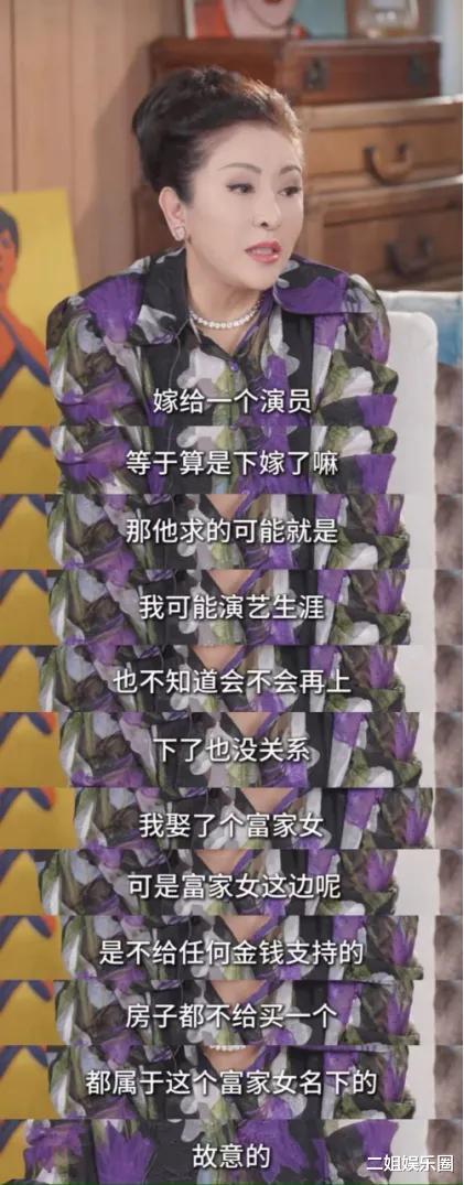 她爆料一富家女,“下嫁”给娱乐圈一男演员,一场婚礼,男演员散尽家财博白富美一笑,而女方却在婚后的财产上各种防备,连基本的房子都吝啬不给一套。