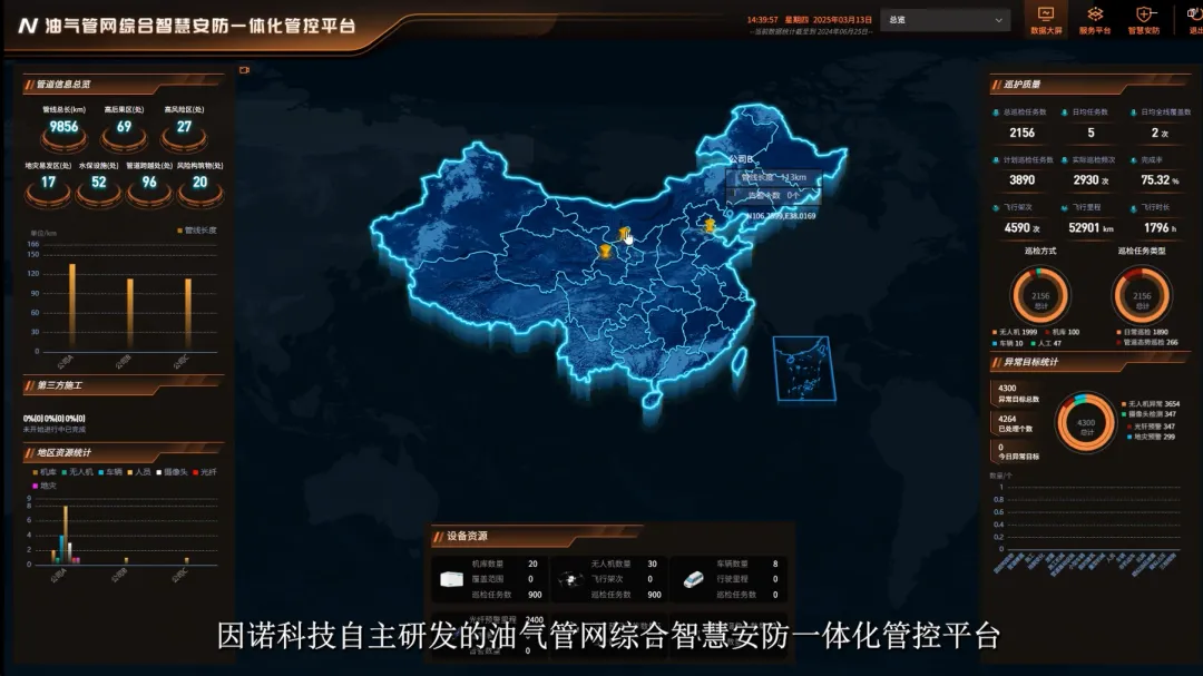 油气管道应用:因诺科技打造的无人机巡检体系,并非局限于对管道外观进行简单拍摄,而是将无人机进化为一套具备“会看、会嗅、会说、会动、会思考”能力的智能巡检体。无人机能够搭载多种传感器,执行可见光检测、红外检测、激光3D建模以及甲烷气体检测等多项任务。该系统依据管道沿线带状走廊的环境态势,如管道本体状况、地形地貌特征、植被覆盖情况、施工活动信息以及地质灾害风险点等多维度数据等,智能制定“因地制宜”、“因时制宜”的巡检策略。无人机自动完成起降与巡检作业,实时采集图像、视频及气体等数据,并迅速传输至后端管理平台。借助AI行业大模型技术,系统可对多模态数据进行实时采集与分析,精准且高效地锁定异常点,全面超越了传统人工巡线或仅依赖可见光摄像头的巡检模式。