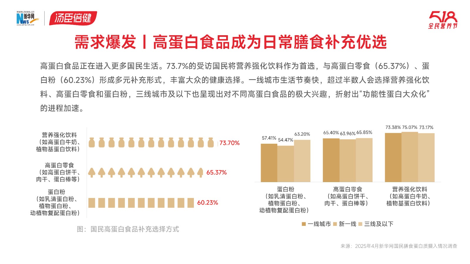 5月18日,在新华网主办、中国营养学会指导、汤臣倍健协办的“518全民营养节”上,由新华网联合汤臣倍健发布的《2025年国民蛋白质摄入现状调查报告》发现,45%的人没有吃够蛋白质,超七成国人不太懂科学补充蛋白质,优质蛋白的摄入也未达到理想状态。如何将“每天一杯优质蛋白,为健康打底”的科学倡议落到实处,仍需要更多专业引导。