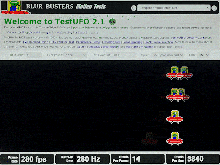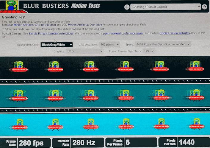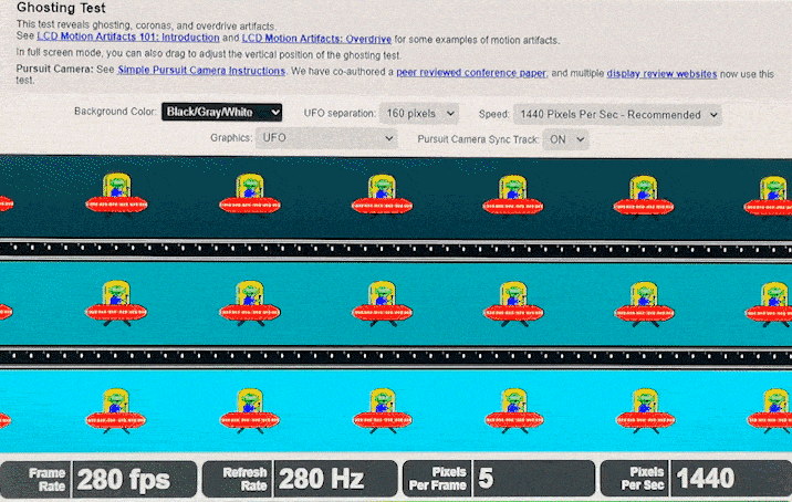 在同样280帧280Hz的刷新率下,IPS电竞显示器下,会产生较多的拖影,卡顿现象十分的明显;