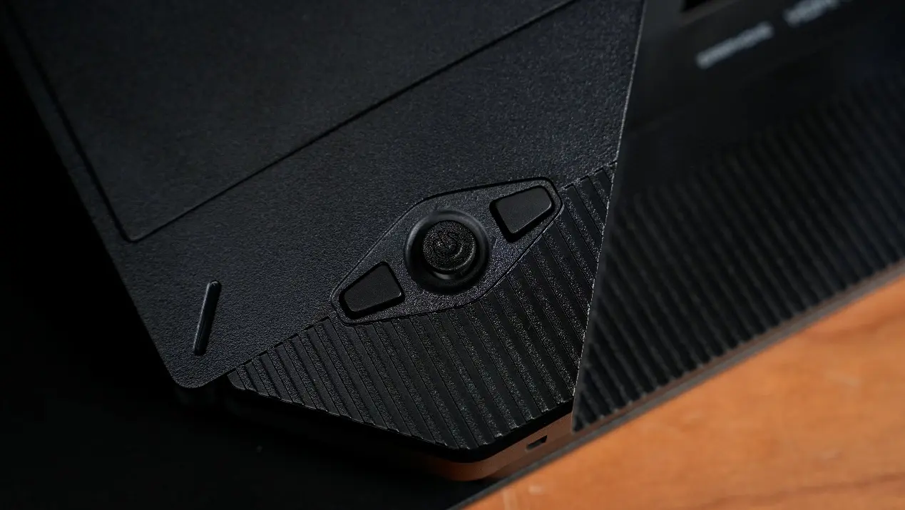 MO27Q28G的系统操控核心位于显示器背部左下角,采用三键组合的设计:以背面视角,左侧为战术一键切换键,中间是五维导向摇杆,右侧为KVM按键,快捷菜单的十字型操作按键在正对屏幕的右侧,在操作的便捷性上满足了大部分人的习惯。