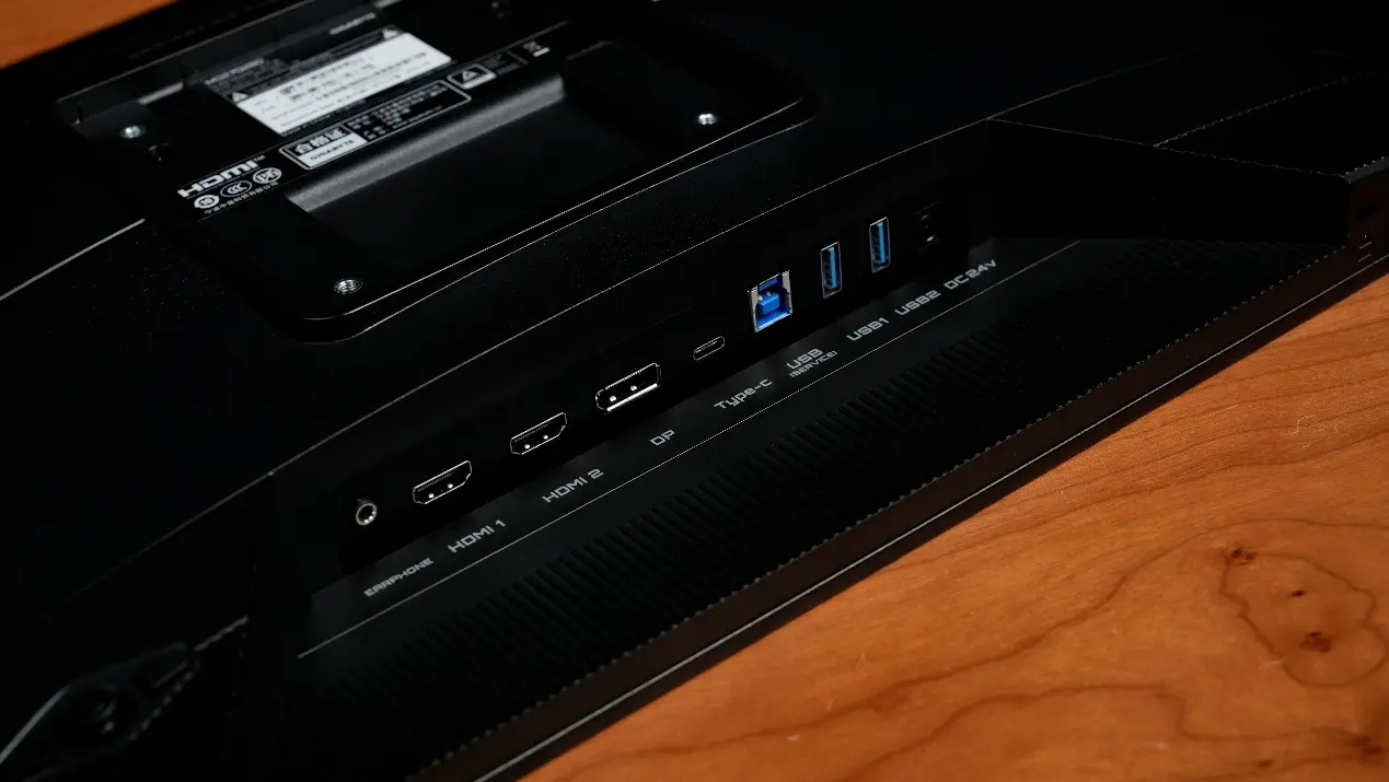 在接口方面,从右到左依次为24V电源接口、两个USB 3.2接口、上行USB 3.2接口、USB Type-C接口、DP 1.4接口、两个HDMI 2.1接口以及耳机接口。其中,HDMI、DP、USB Type-C接口均支持2K@280Hz的视频输入。尤其是HDMI接口还支持最高4K@144Hz的视频输入,非常适合连接次世代游戏主机,如PS5、Xbox Series X等,让玩家能够在游戏中体验到流畅的画面和出色的视觉效果。
