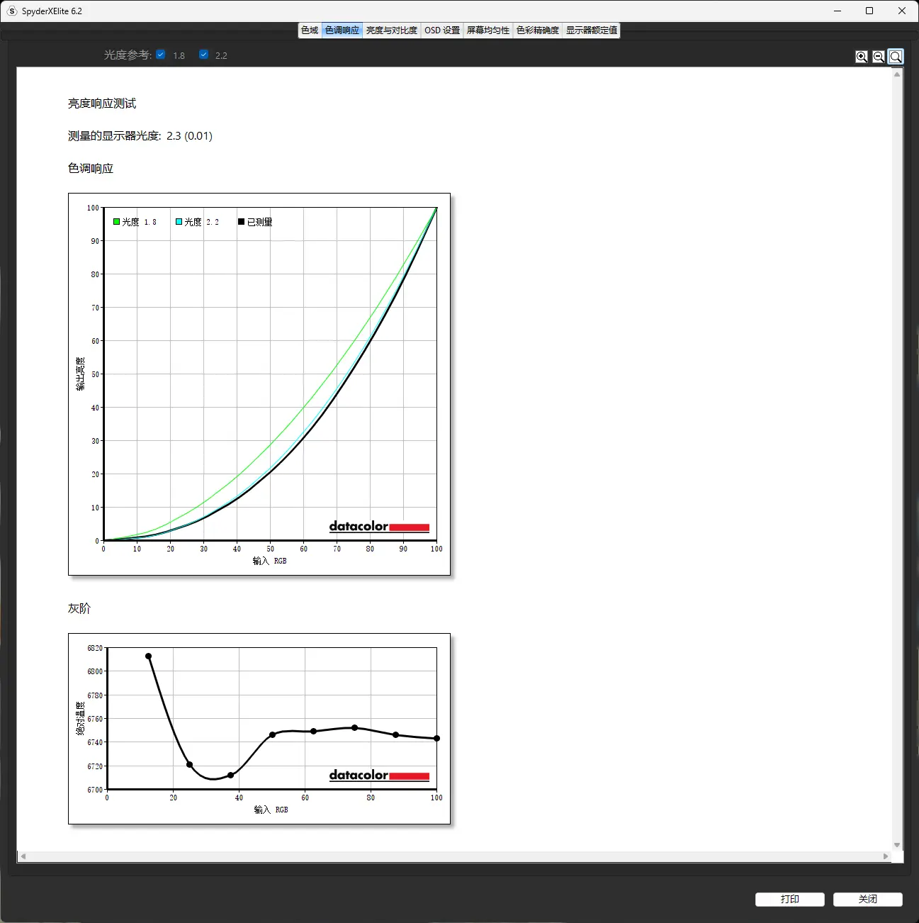 而在色调与灰阶的测试当中,MO27Q28G展现出了专业级的调校水准:其色调响应曲线Gamma 2.2标准曲线基本重合,这意味着显示器能够比较精准还原现实世界的光影层次,灰阶在20%-100%较为稳定,没有太大幅度的波动,数据表明这台W-OLED电竞显示器能够有限避免不同亮度下出现色温偏冷或偏暖的问题,而对于长时间处理图片的场景,这种稳定的色温能保证色彩的一致性,有助于减少视觉疲劳。