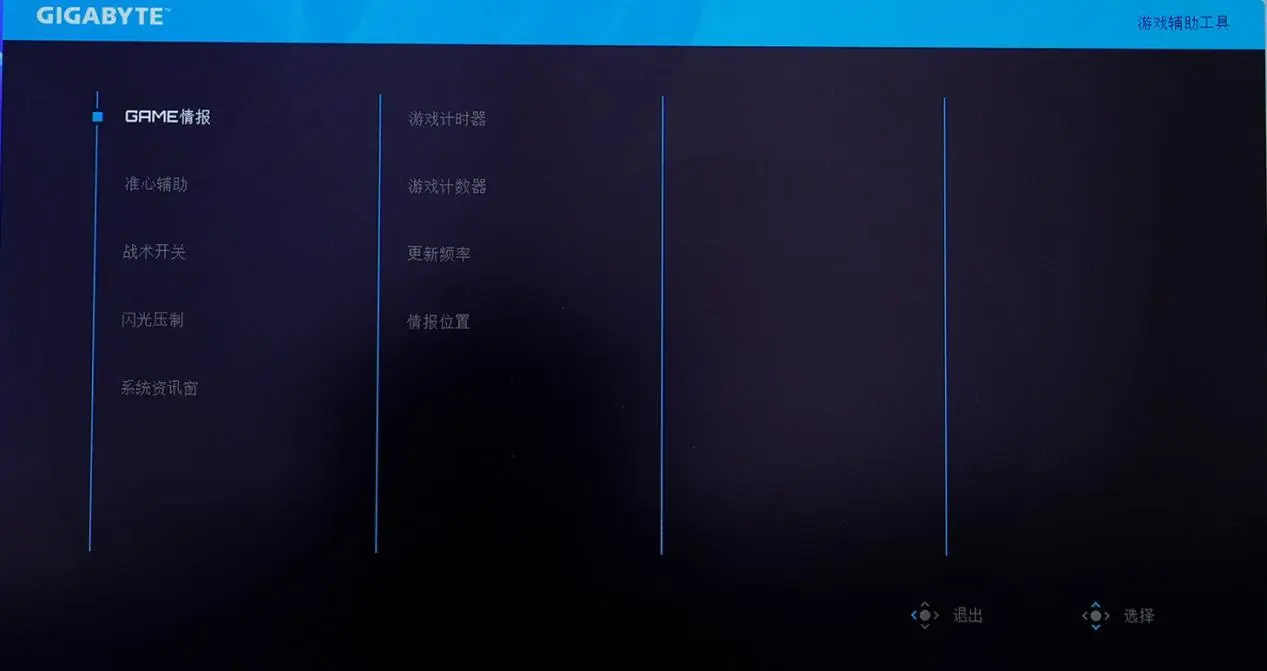 按下五维导向摇杆,可以看到屏幕右下角的快捷菜单,上下分别是显示设置与关闭电源功能。左侧是OLED保护功能选项,右侧是对战术键进行设置,通过五维导向摇杆即可快速进入二级菜单。