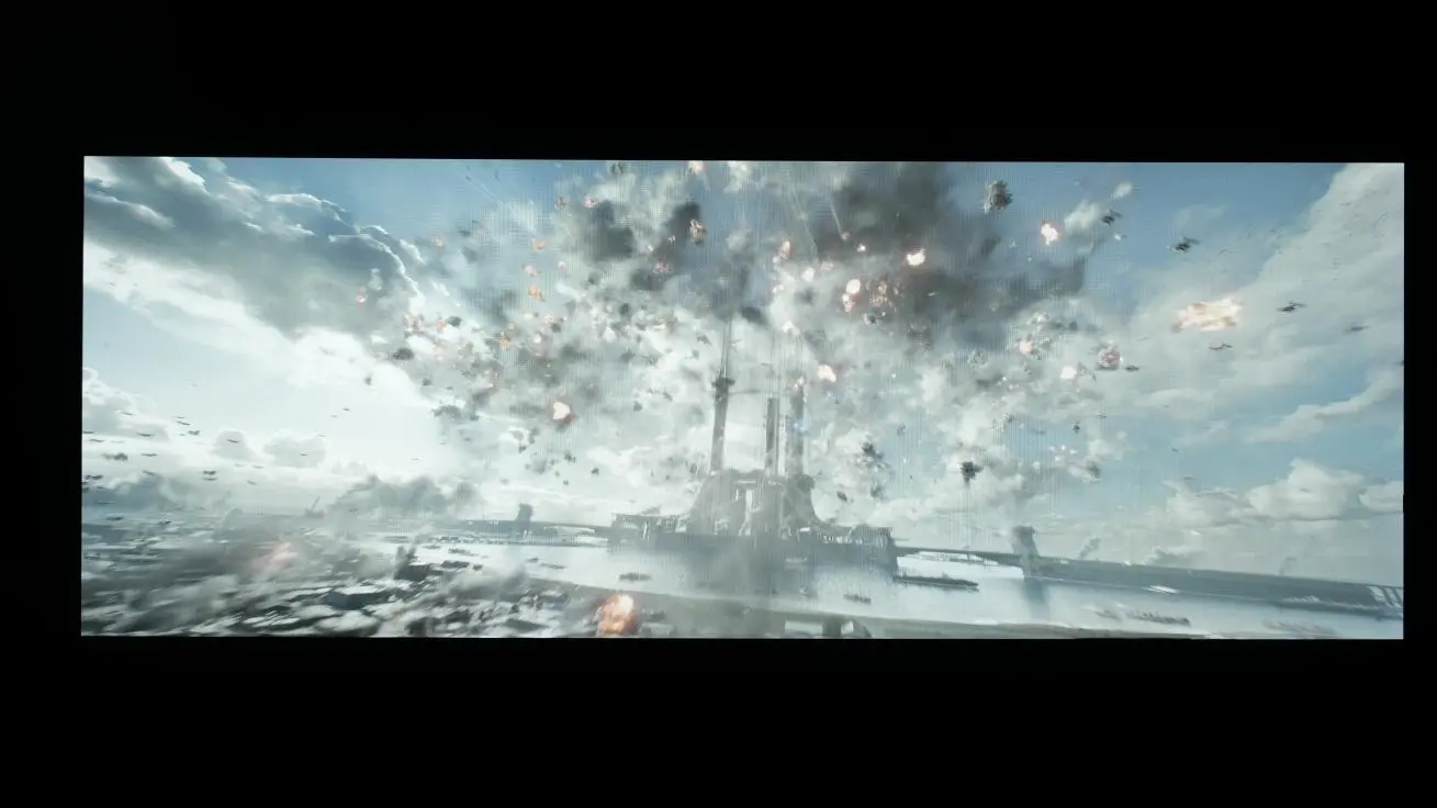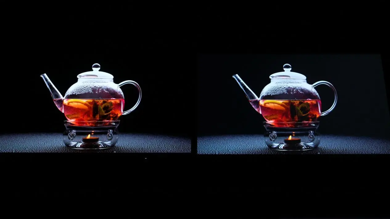 通过图片我们可以看出,在侧45°的视角下,IPS电竞显示效果明显不如MO27Q28G,尤其是在黑色部分,色彩损失相对较为严重,W-OLED面板所展现出的色彩更加具有层次感,使画面看起来更加的真实与立体。