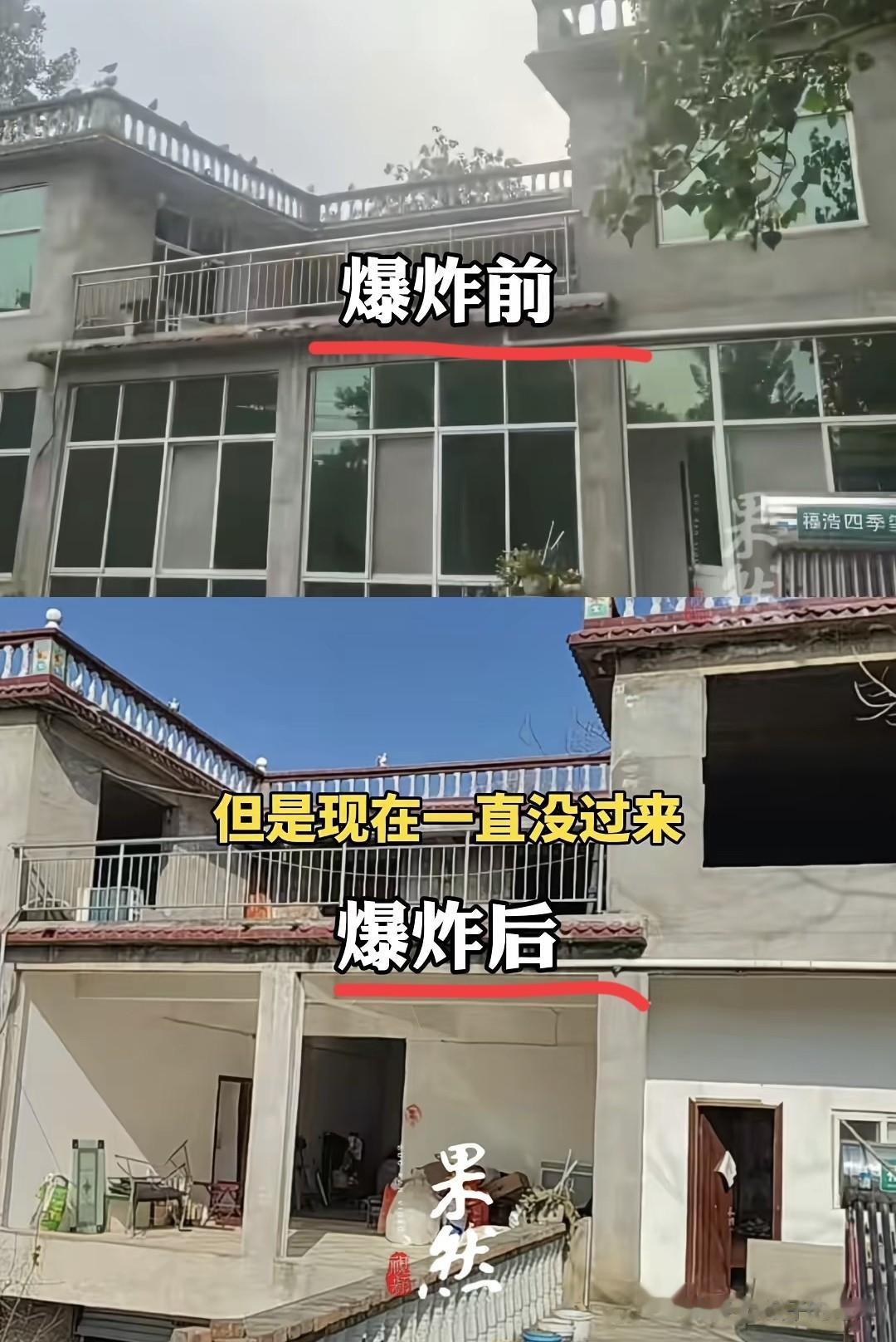 上图是李先生给媒体提供的爆炸前后对比图,窗户都废了不知道以为一夜毛坯。