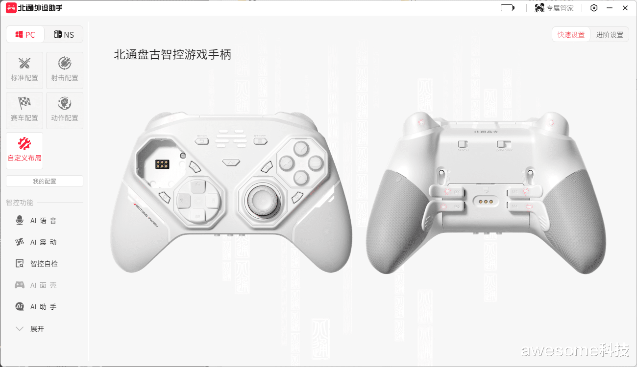 我玩游戏八年,从入门百元手柄到旗舰精英款,换过不下十款,每一次换新,都像是在“凑活”——这款摇杆顺手,按键就差点意思;那款按键灵敏,适配性又拉胯。我一直以为,游戏手柄的“妥协”是常态,直到北通盘古(丙午款)送到我手上。