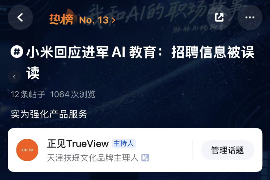 小米回应“进军AI教育”:人才招聘被误读有关