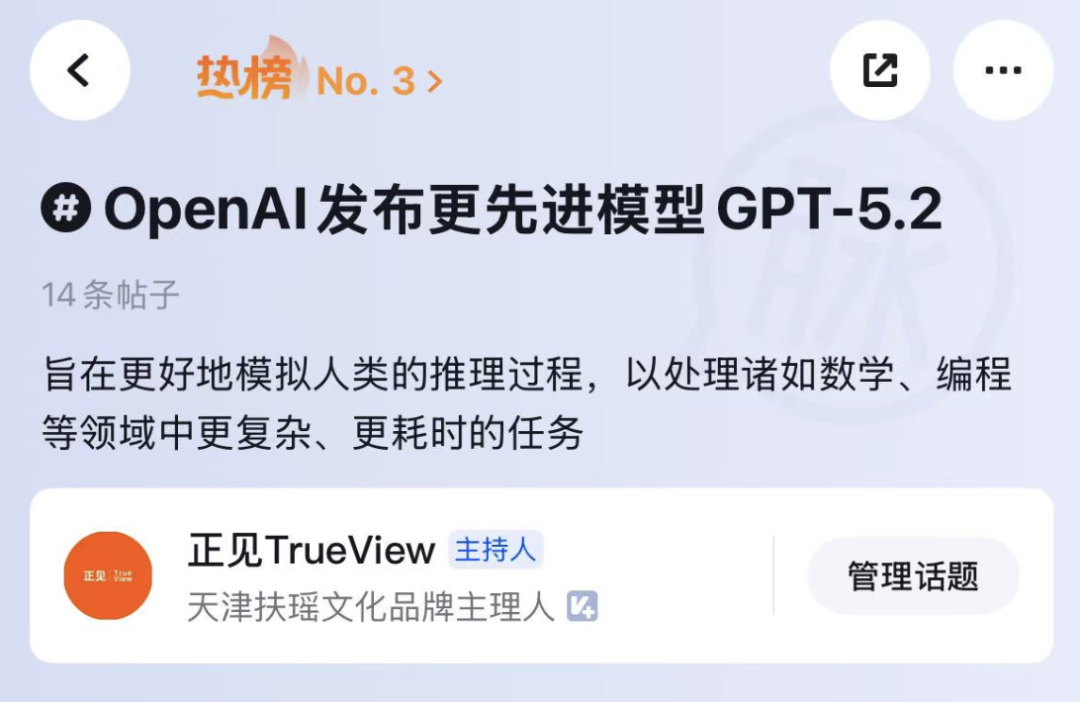 OpenAI发布更先进模型GPT-5.2