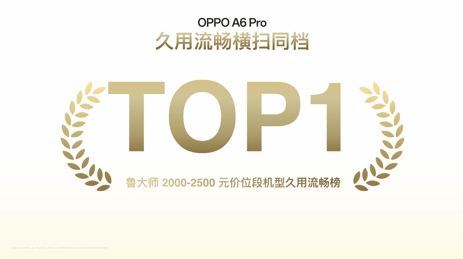 凭借这套软硬一体的“组合拳”,A6 Pro 成功通过了 OPPO 内部实验室最严苛的 72 个月老化流畅度测试,并一举荣登鲁大师实验室 2000-2500 元价位段久用流畅度排行榜榜首,实现久用流畅内外双认证。