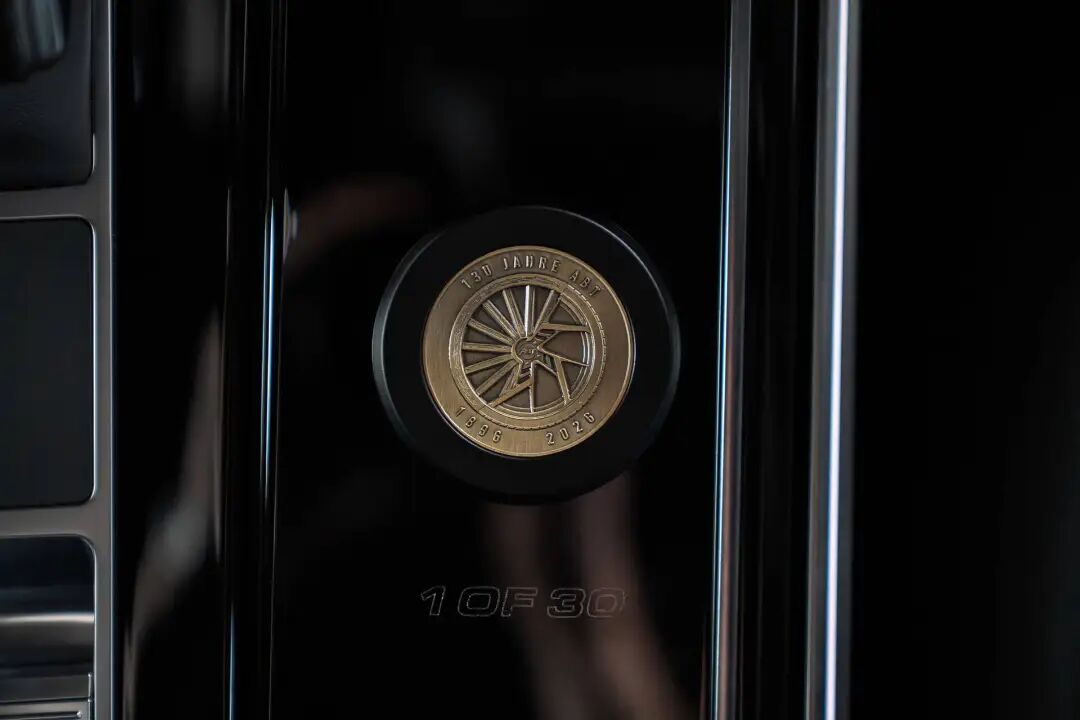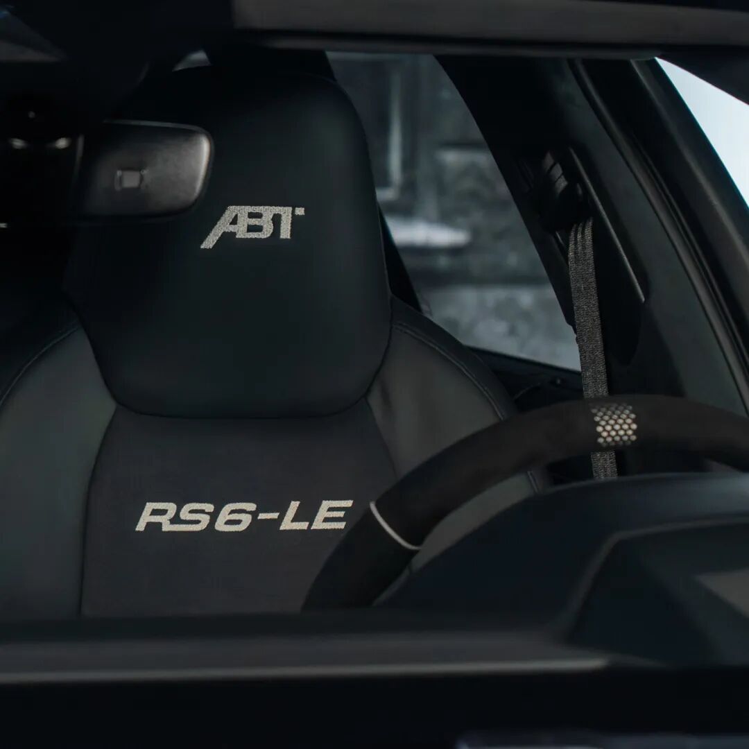 内饰延续了这一主题,大面积使用黑色与碳纤维材质。方向盘包裹了Alcantara面料,座椅则采用了Dinamica材质。金色元素再次出现,例如座椅靠背上绣有车型名称,中控台上则有一枚纪念徽章。ABT还提供一项选装,为仪表板和座椅上的碳纤维饰条增添金色金属斑点效果。