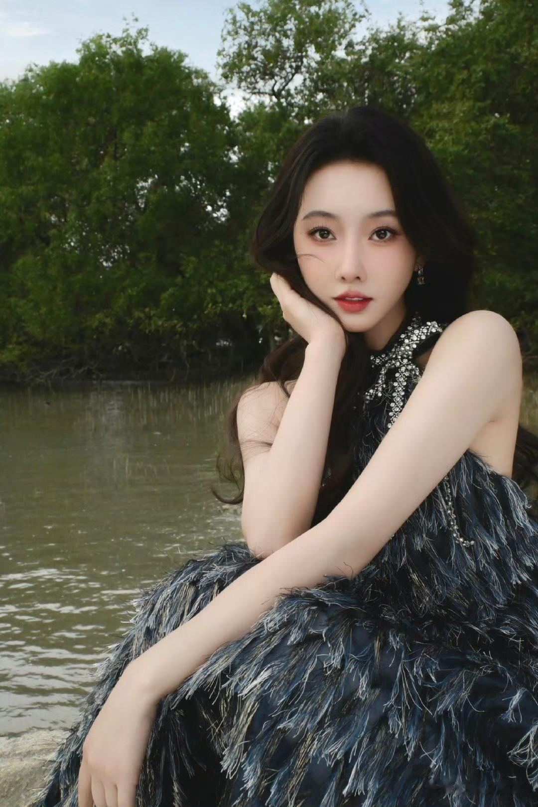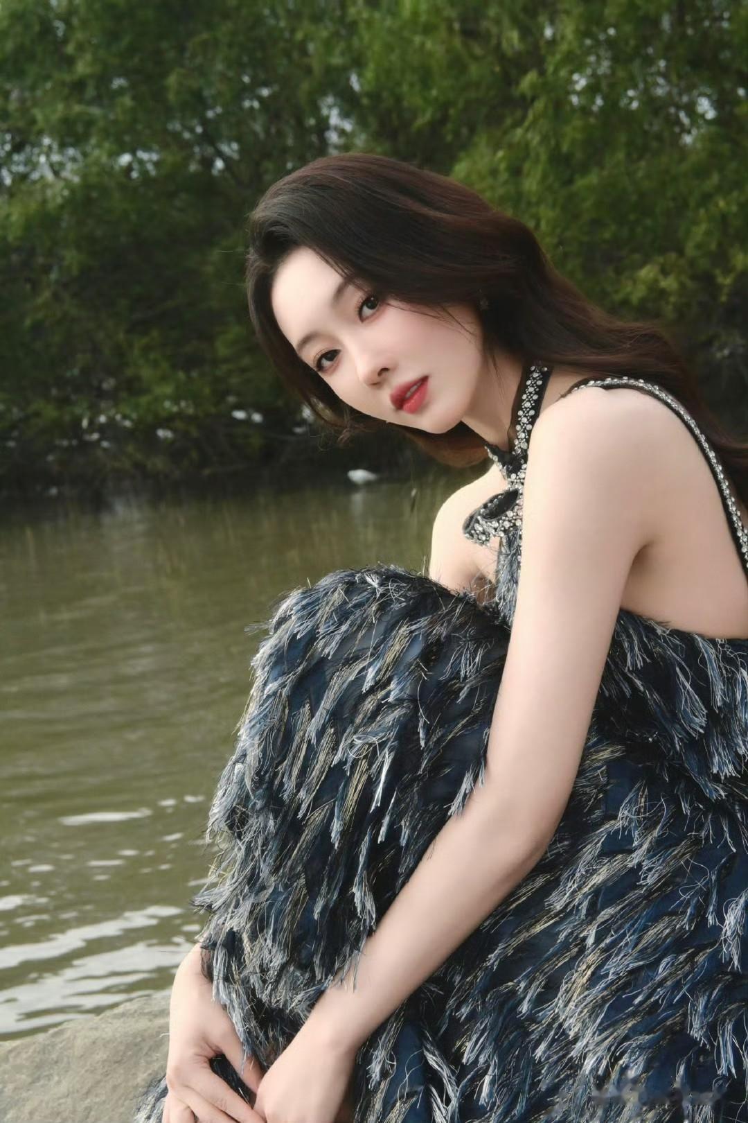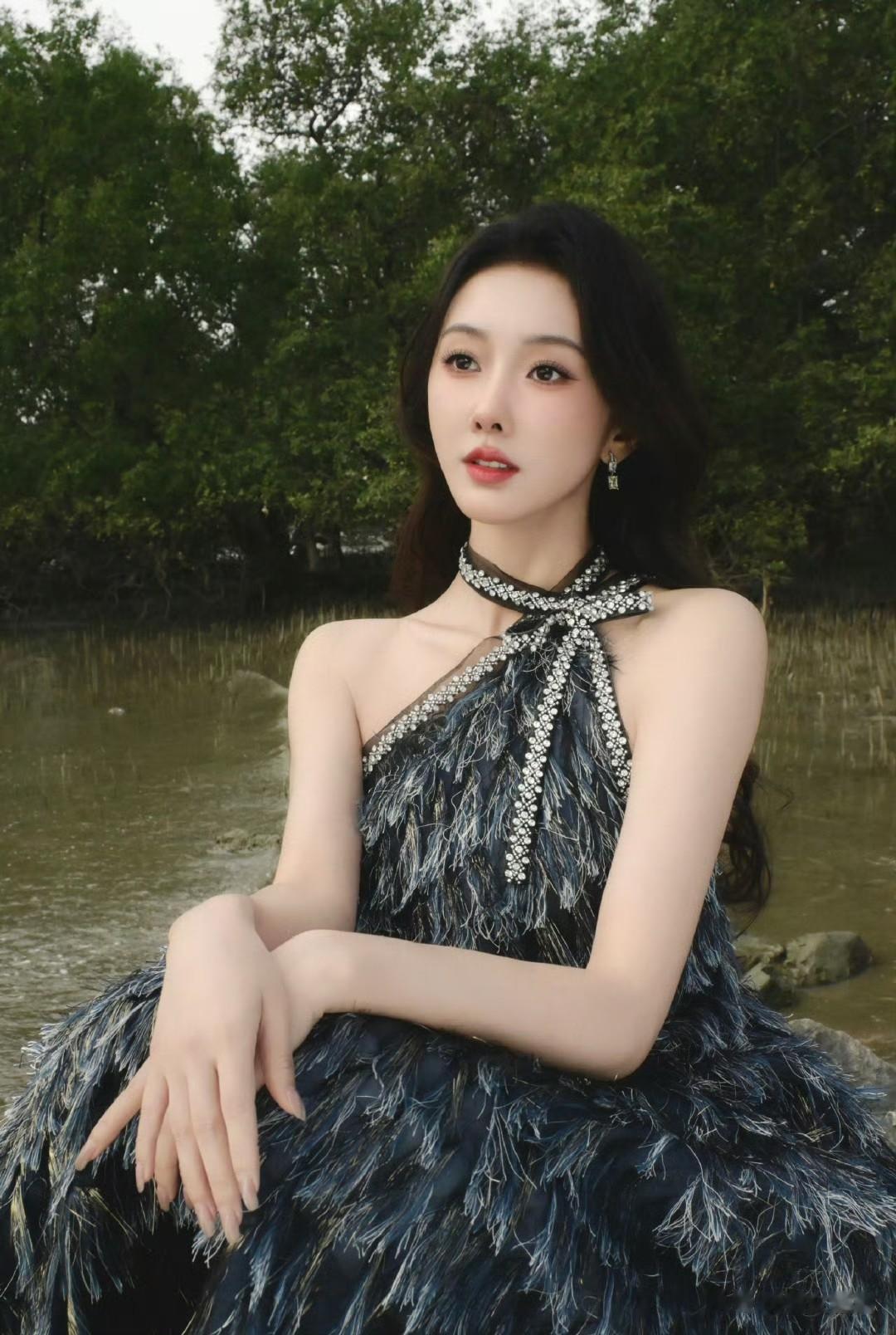 仙气飘飘,一眼沦陷的仙女穿搭,宣璐的春日造型太出圈!挂脖羽毛裙轻盈飘逸,勾勒出曼妙身姿,在原野间自带柔光滤镜。简约妆容搭