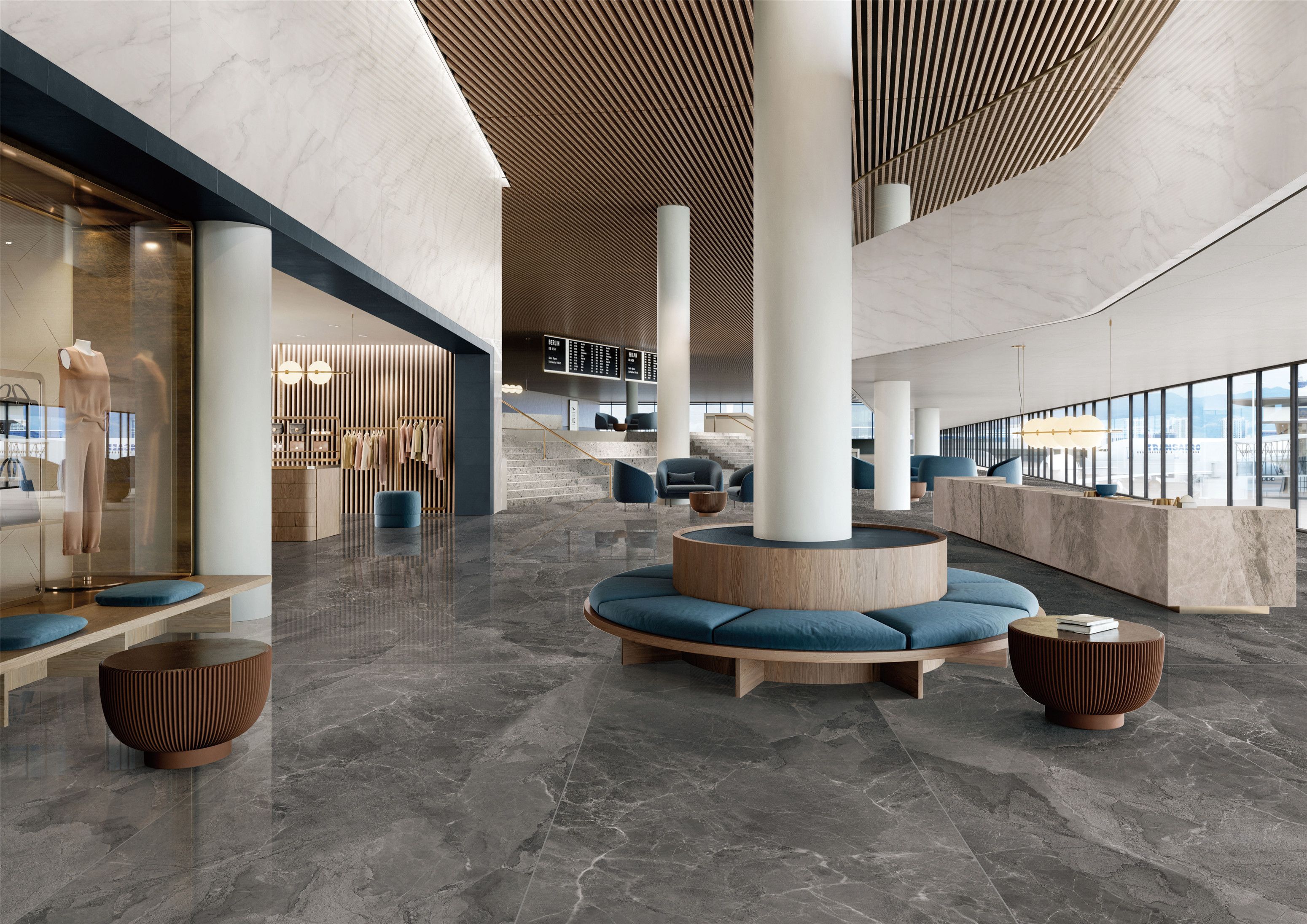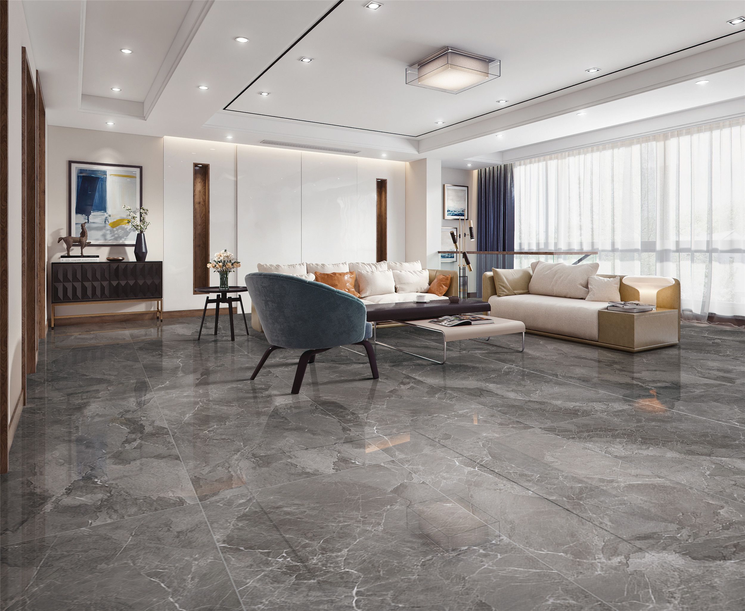 清晨的阳光透过纱帘,在国际瓷砖品牌罗曼缔克维罗娜深灰大理石瓷砖地面上漾开一层柔润的光泽。我赤脚踩上去,微凉的触感带着石材特有的细腻,像踩在被晨露浸润的山岩上,每一步都踏实又清醒。