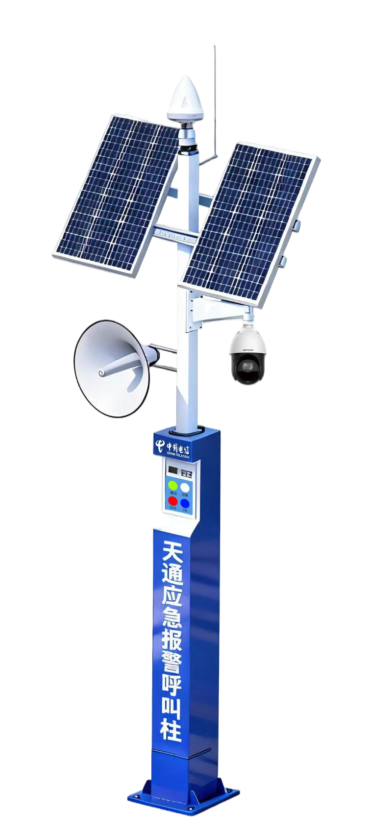 “天通报警呼叫柱PS03”是一款专为无信号山区设计的立杆式智能应急设备,集成了天通卫星通信、北斗/GPS双模定位、太阳能供电、视频监控、语音播报、应急照明、便民充电等七大功能模块,实现“一键报警、精准定位、快速响应”。