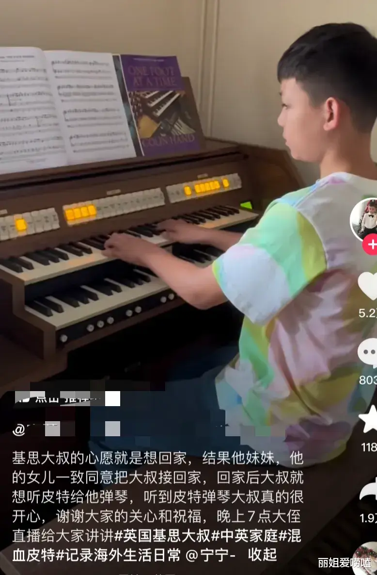 其实在9月3日的时候就已经有迹象了,当时他的家人发布了一则动态,称大叔最大的心愿就是想回家,回家想听孩子弹琴给他听。看来当时皮特弹琴的时候,大叔应该就在一旁家人说听到孩子弹琴,他真的很开心