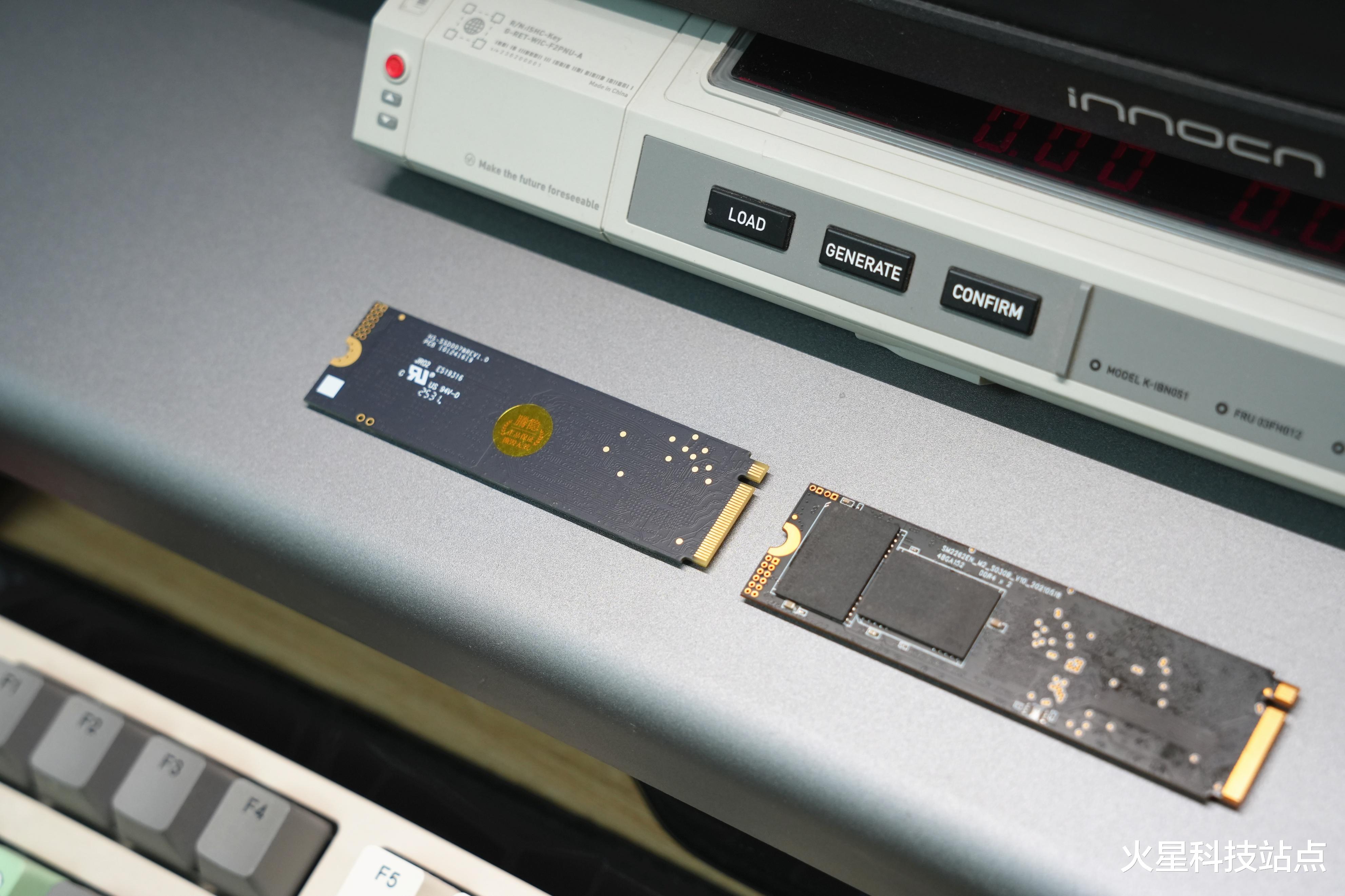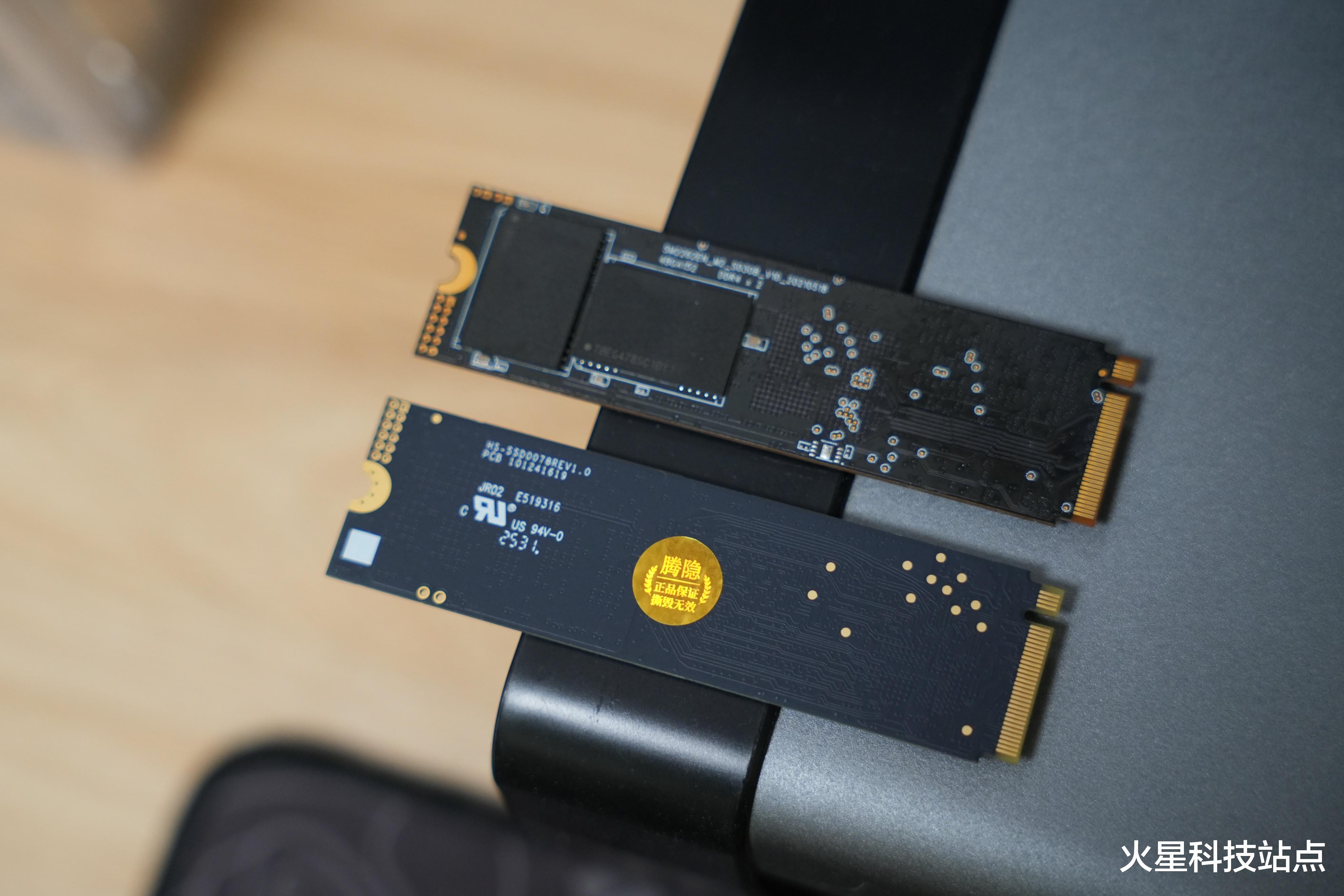 其实这里可以看到两款硬盘的外观设计还是相差很大的,腾隐TQP4000采用的是单面布局设计,厚度控制更薄,这种设计可以非常方便的进行堆叠安装,如果是双层布局,有时候就会因为厚度太高而无法安装使用,前段时间我在NAS上就遇到了双面硬盘无法正常安装的情况,所以现在我再也不选双面硬盘了。
